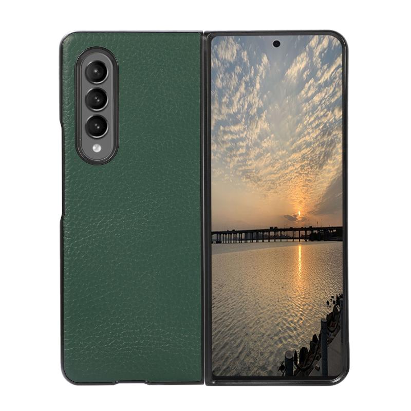 For Samsung Galaxy Z Fold4 Genuine Leather Lychee Texture Phone Case(Green)