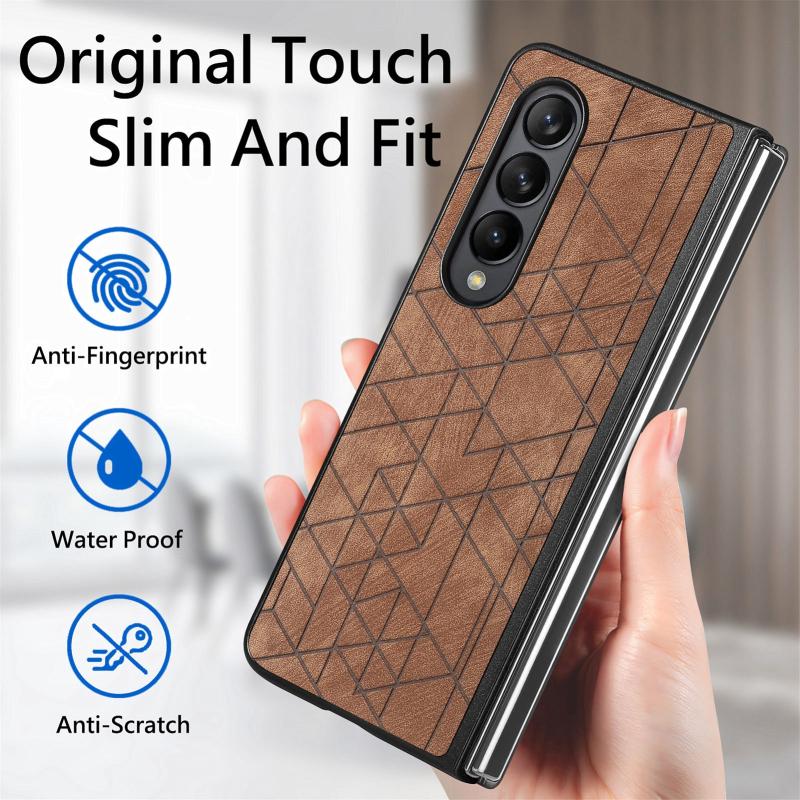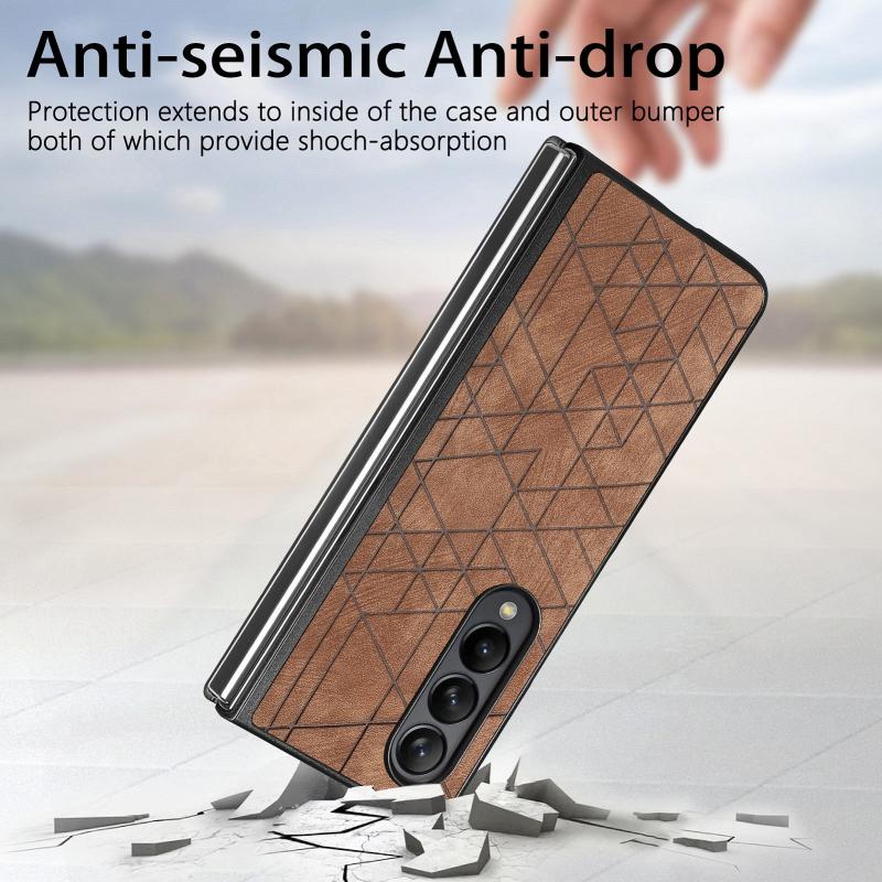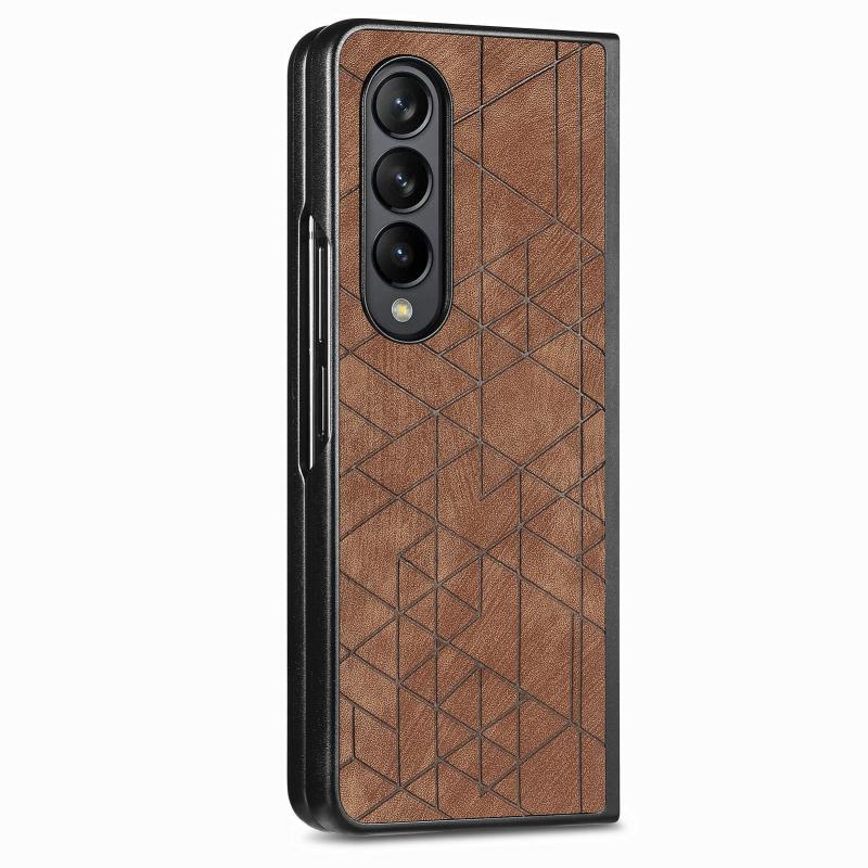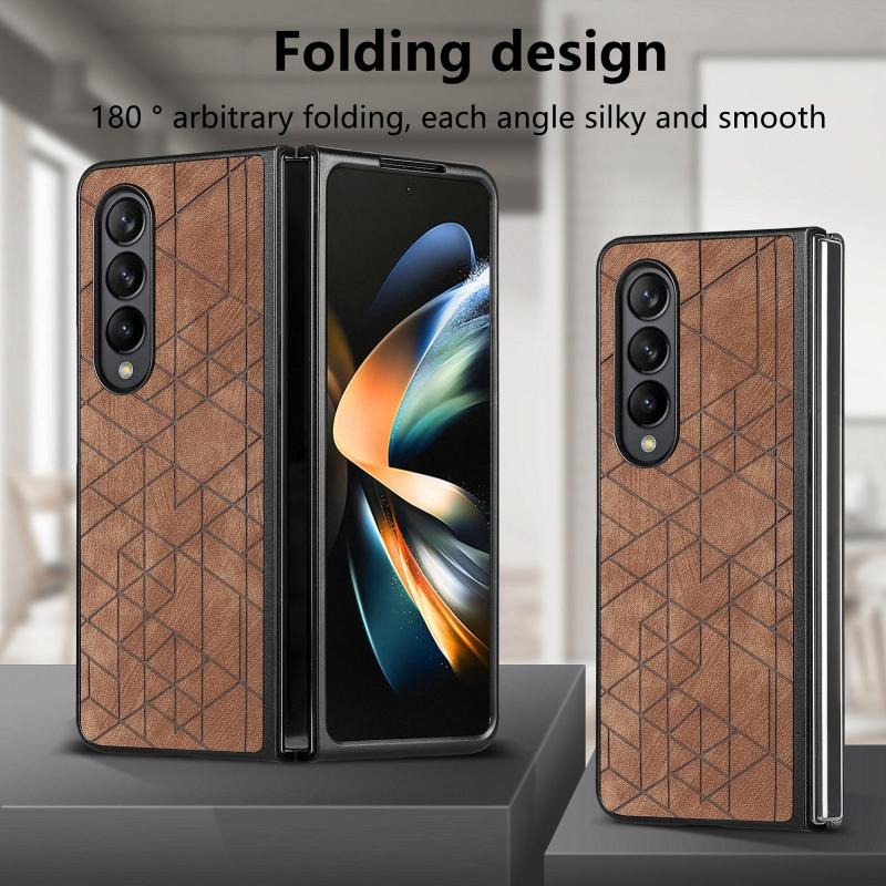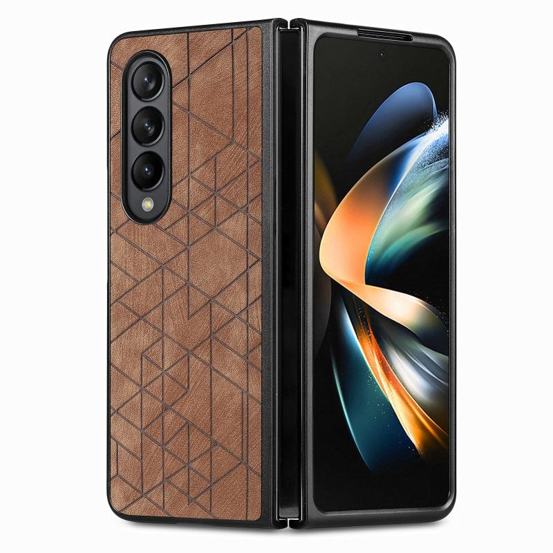 For Samsung Galaxy Z Fold4 Geometric Leather Back Cover Phone Case(Brown)