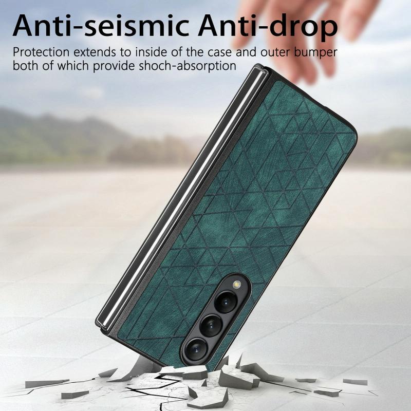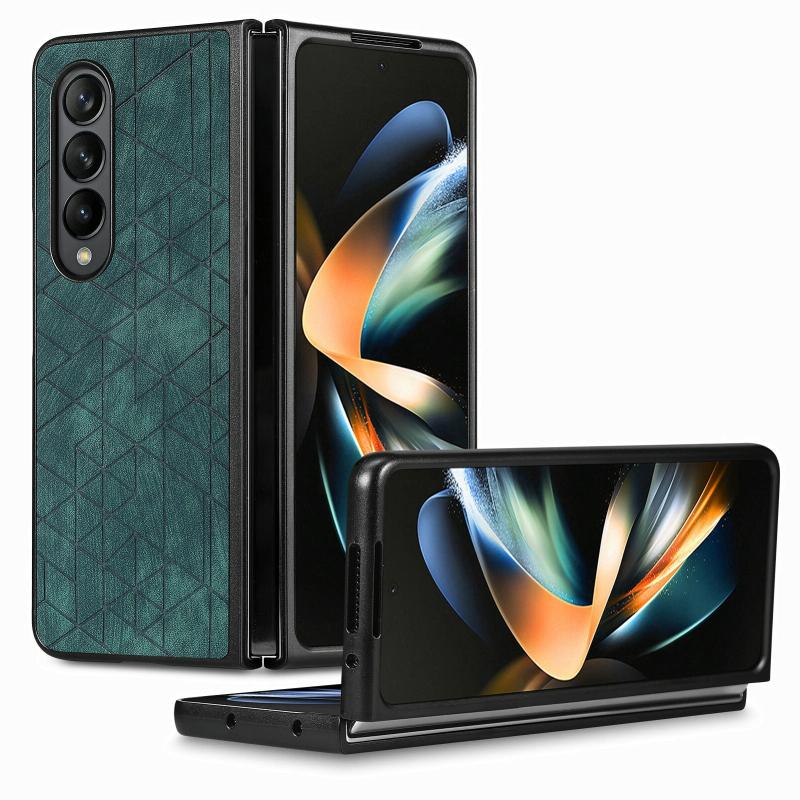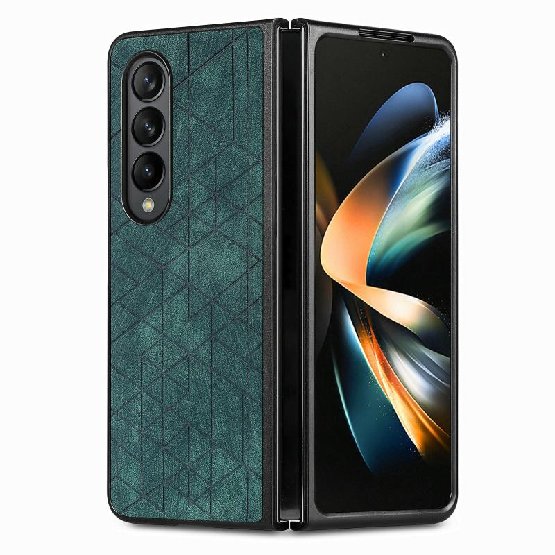 For Samsung Galaxy Z Fold4 Geometric Leather Back Cover Phone Case(Green)