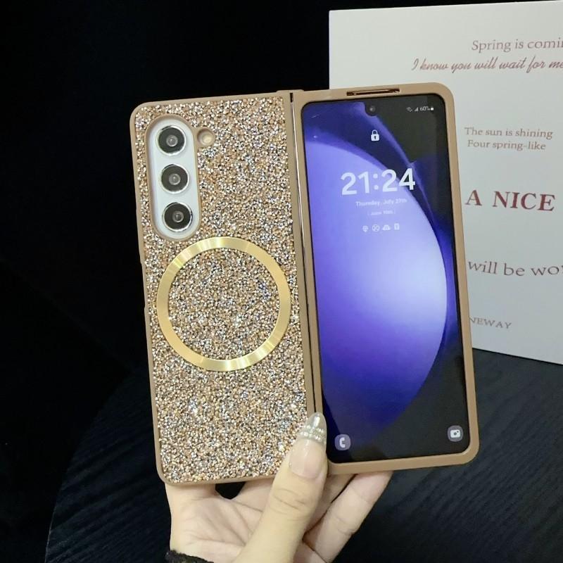 For Samsung Galaxy Z Fold4 Glitter MagSafe PC Phone Case(Gold)