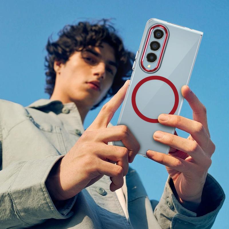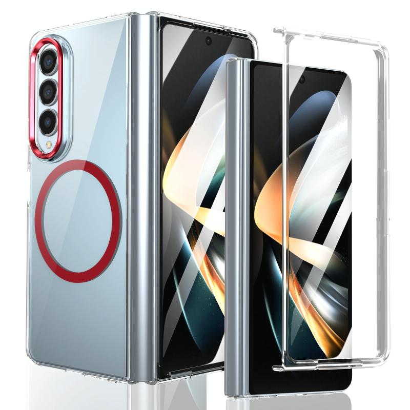 For Samsung Galaxy Z Fold4 lce Folding Series MagSafe Integrated Clear PC Phone Case(Red)