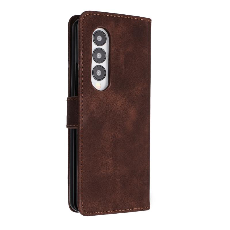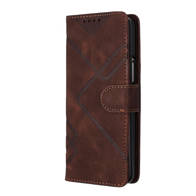 For Samsung Galaxy Z Fold4 Line Pattern Skin Feel Leather Phone Case(Coffee)
