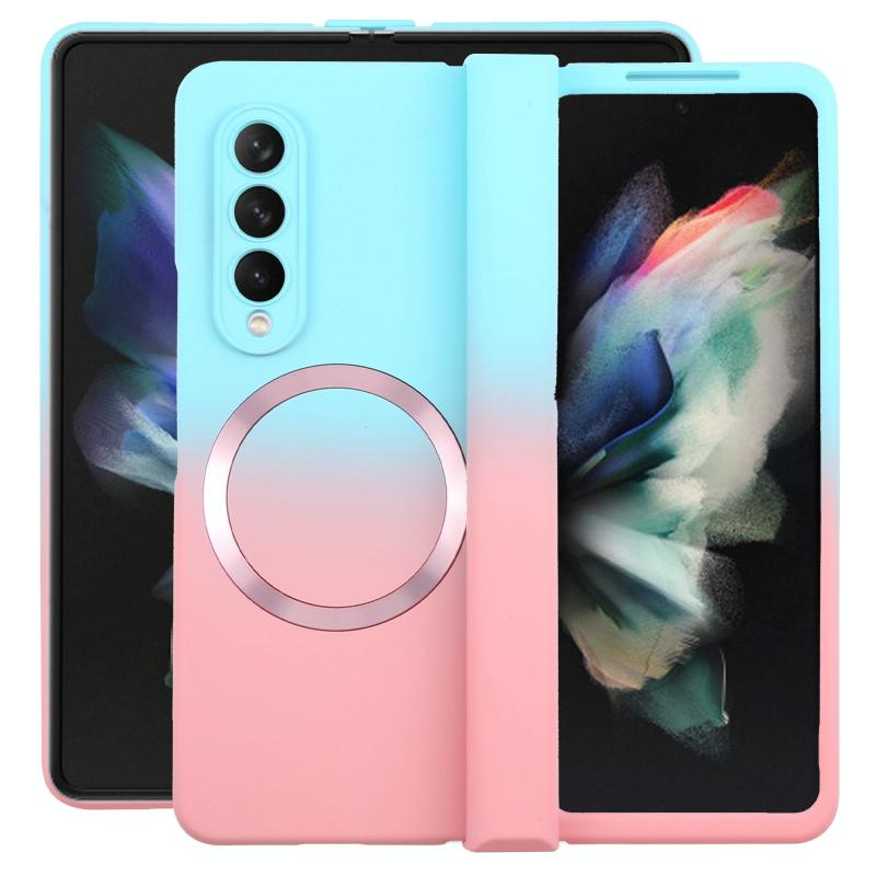For Samsung Galaxy Z Fold4 Liquid PC Gradient MagSafe Phone Case(Blue Pink)