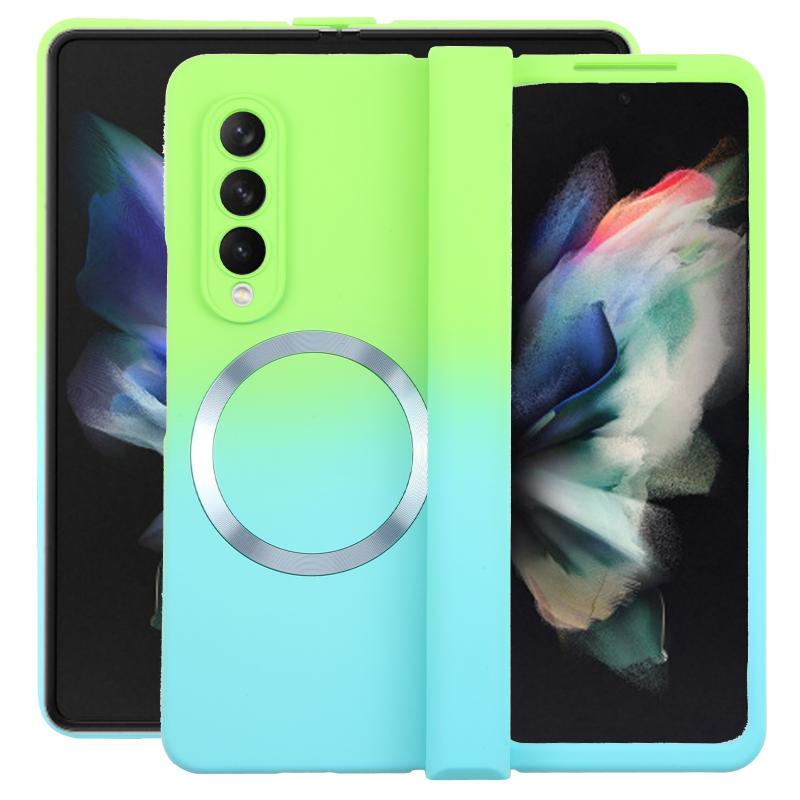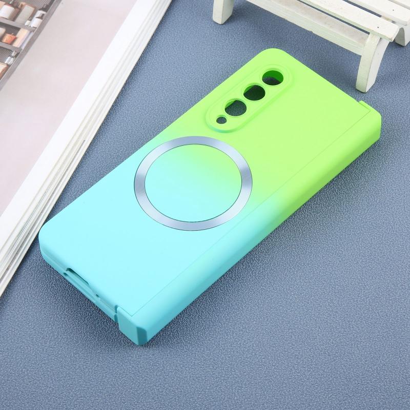 For Samsung Galaxy Z Fold4 Liquid PC Gradient MagSafe Phone Case(Cyan Blue)