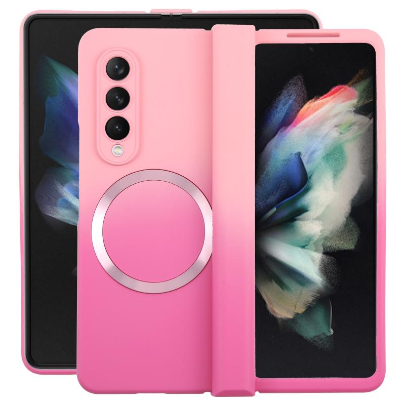 For Samsung Galaxy Z Fold4 Liquid PC Gradient MagSafe Phone Case(Pink Red)