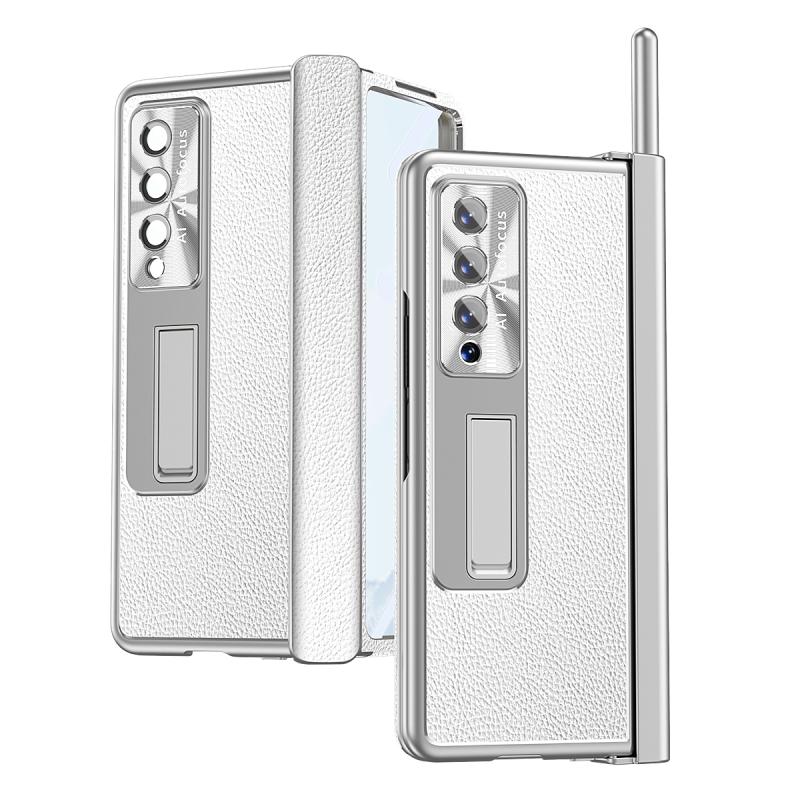 For Samsung Galaxy Z Fold4 Litchi Pattern Magnetic Shell Film Integrated Shockproof Phone Case(Silver)