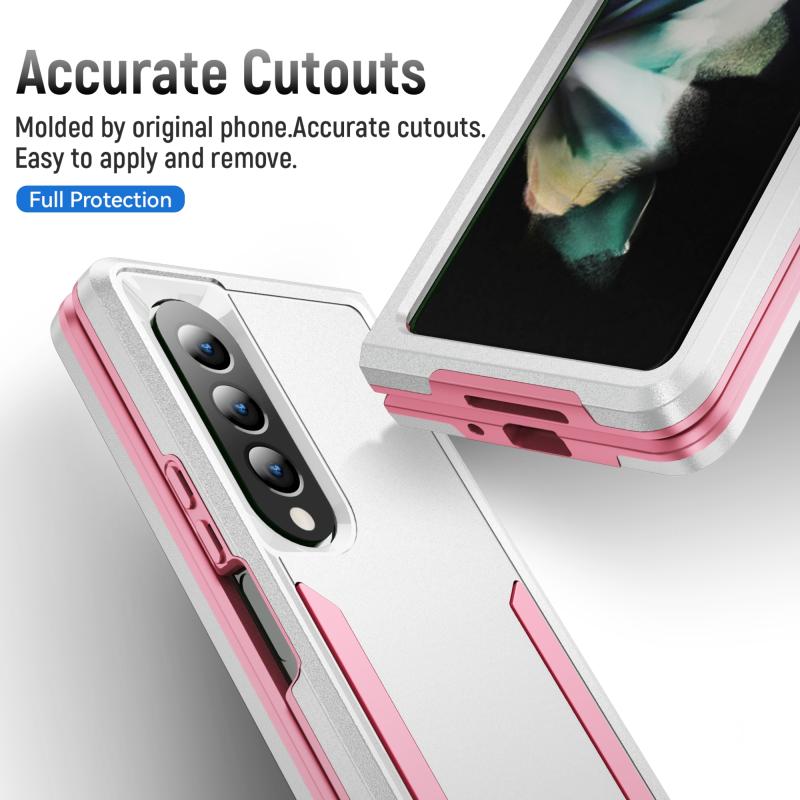 For Samsung Galaxy Z Fold4 PC + TPU Shockproof All Inclusive Phone Case (White+Pink)