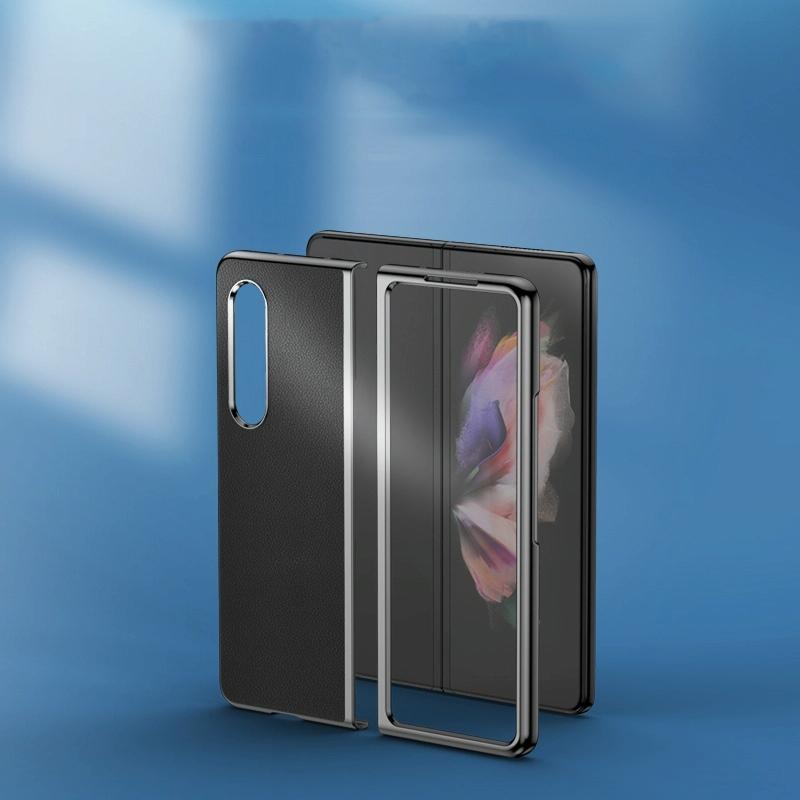 For Samsung Galaxy Z Fold4 Plating Leather Phone Case(Black)
