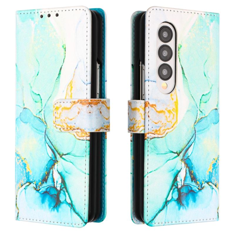For Samsung Galaxy Z Fold4 PT003 Marble Pattern Flip Leather Phone Case(Green LS003)
