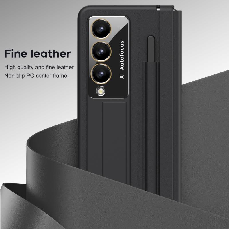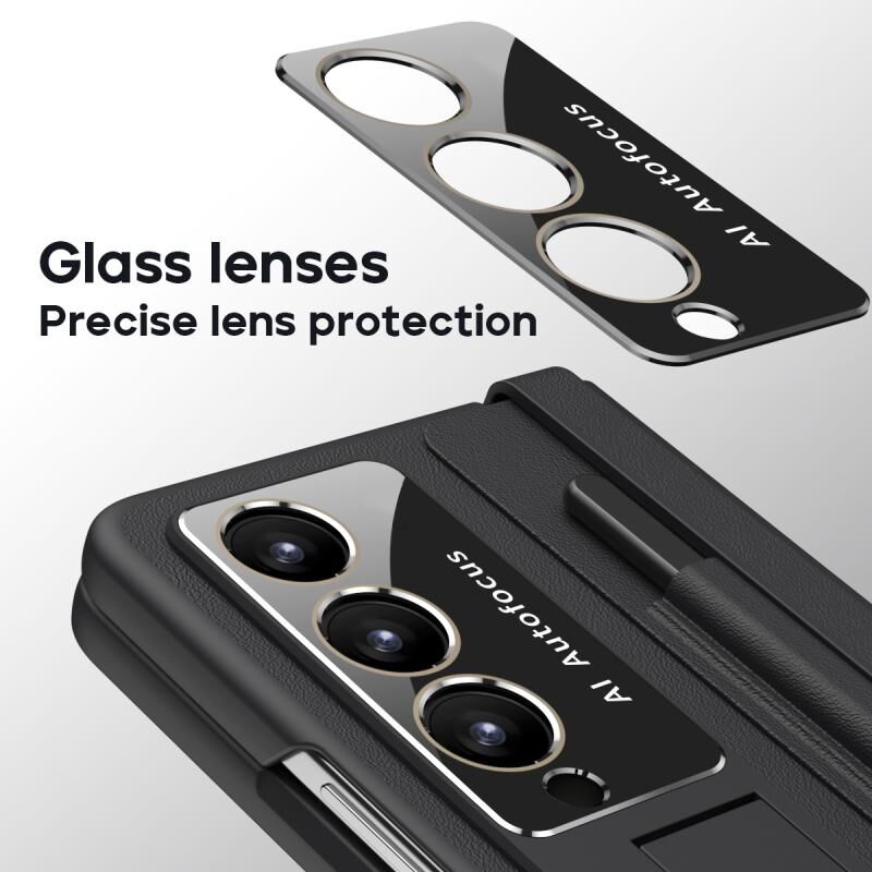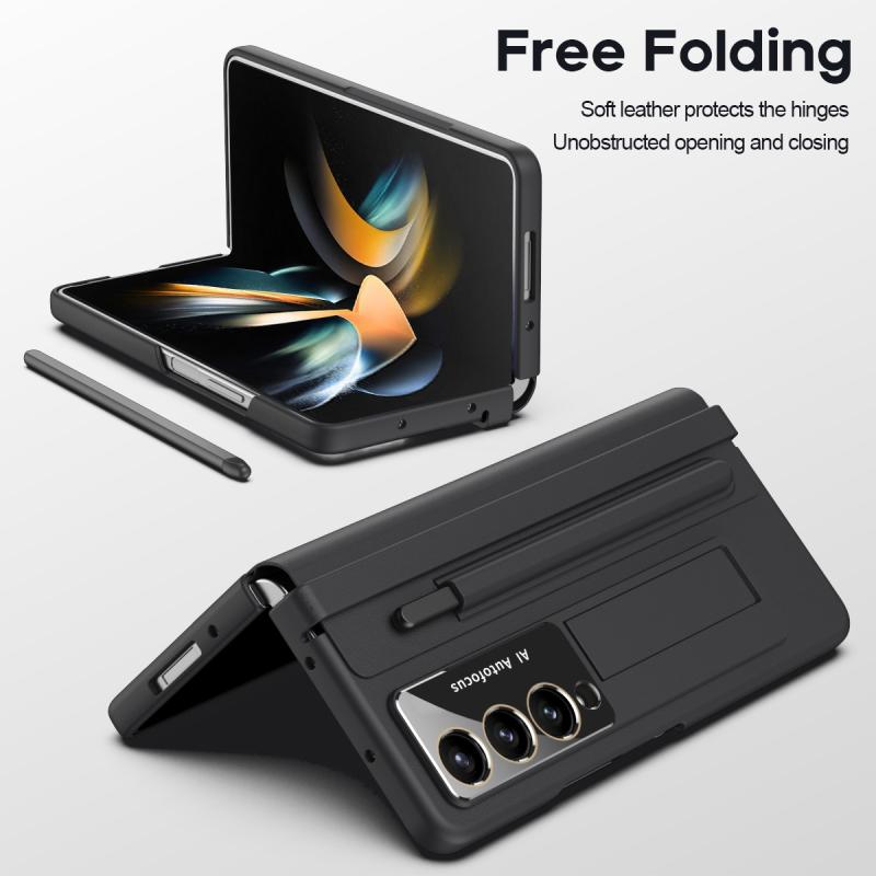For Samsung Galaxy Z Fold4 PU + PC Full Coverage Phone Case with Pen/Pen Slots(Black)