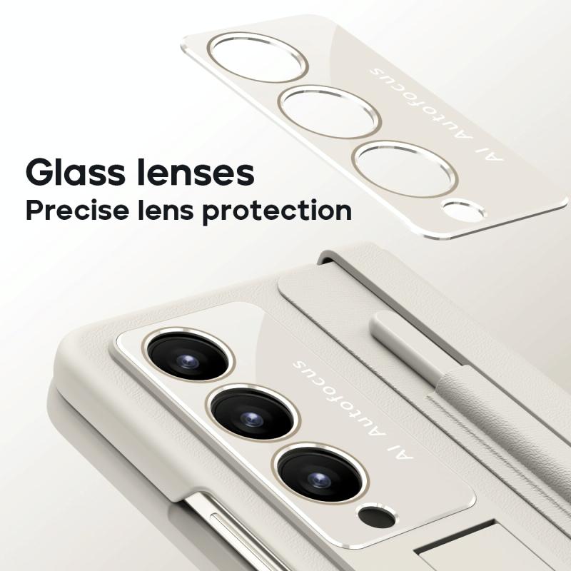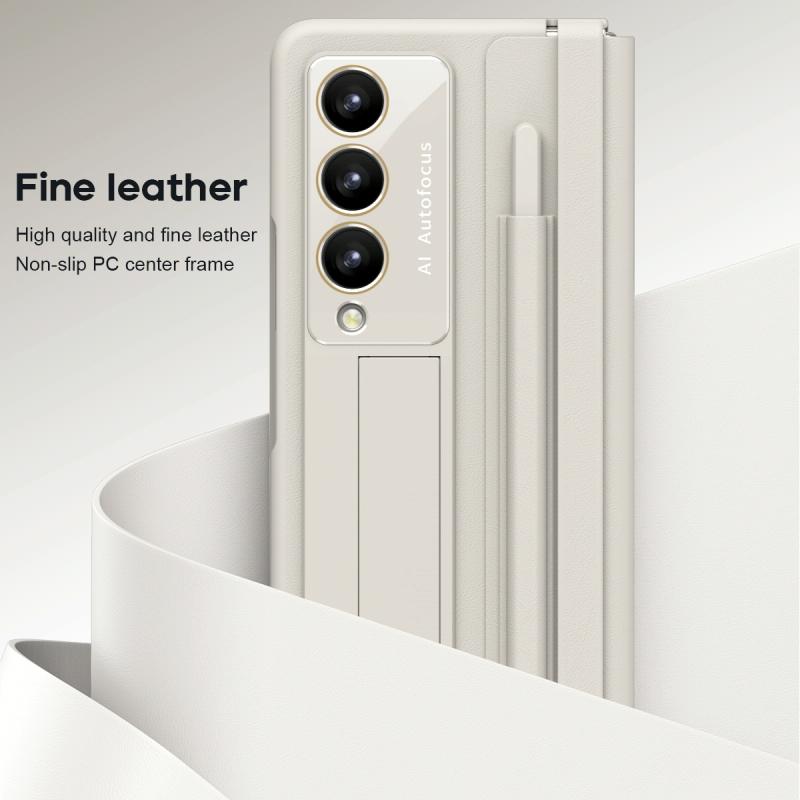 For Samsung Galaxy Z Fold4 PU + PC Full Coverage Phone Case with Pen/Pen Slots(White)