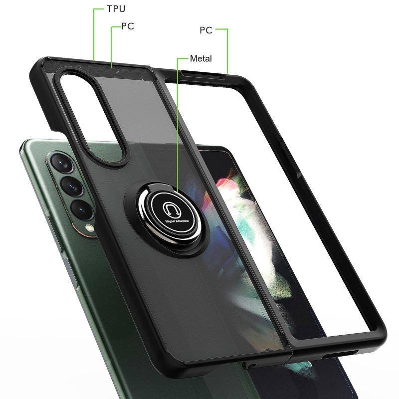 For Samsung Galaxy Z Fold4 Q Shadow 1 Series TPU + PC Phone Case with Ring(Black+Black)