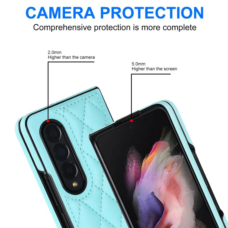 For Samsung Galaxy Z Fold4 Rhombic Microfiber Folding Phone Case(Blue)