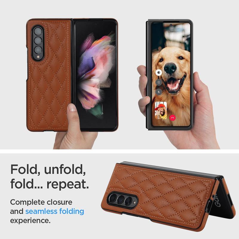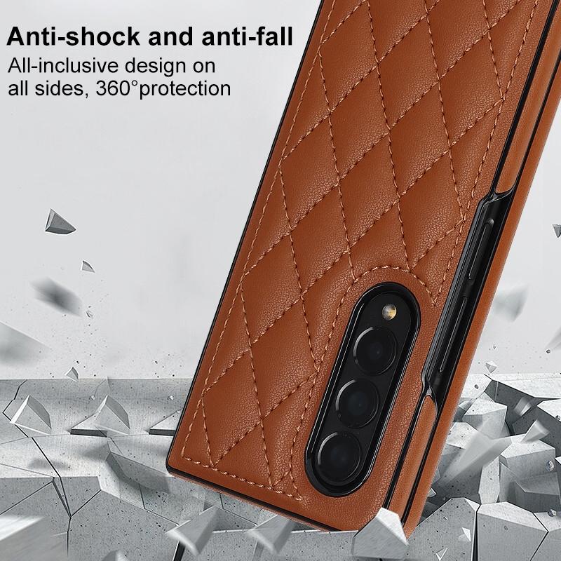 For Samsung Galaxy Z Fold4 Rhombic Microfiber Folding Phone Case(Brown)