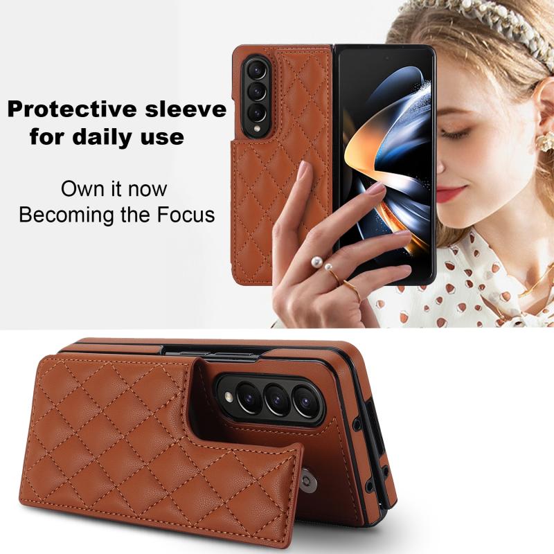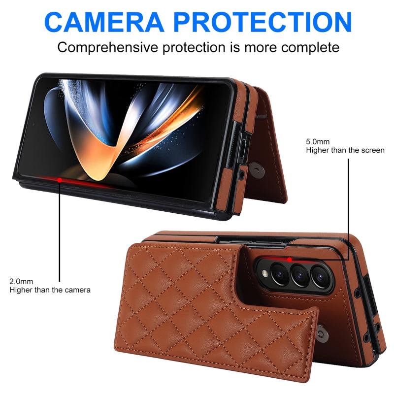 For Samsung Galaxy Z Fold4 Rhombic Texture Full Coverage Fold Double Buckle PU Phone Case(Brown)
