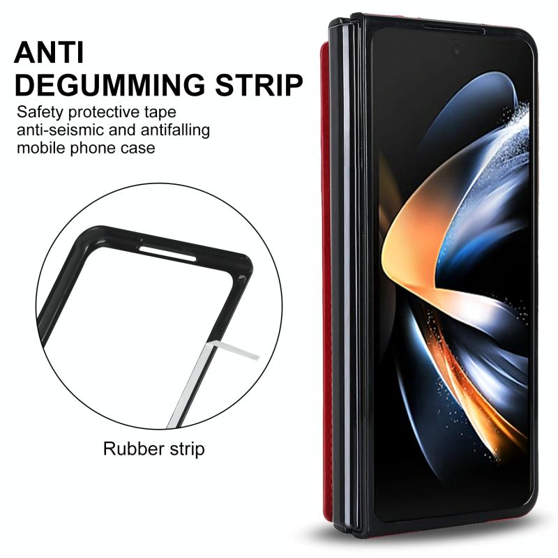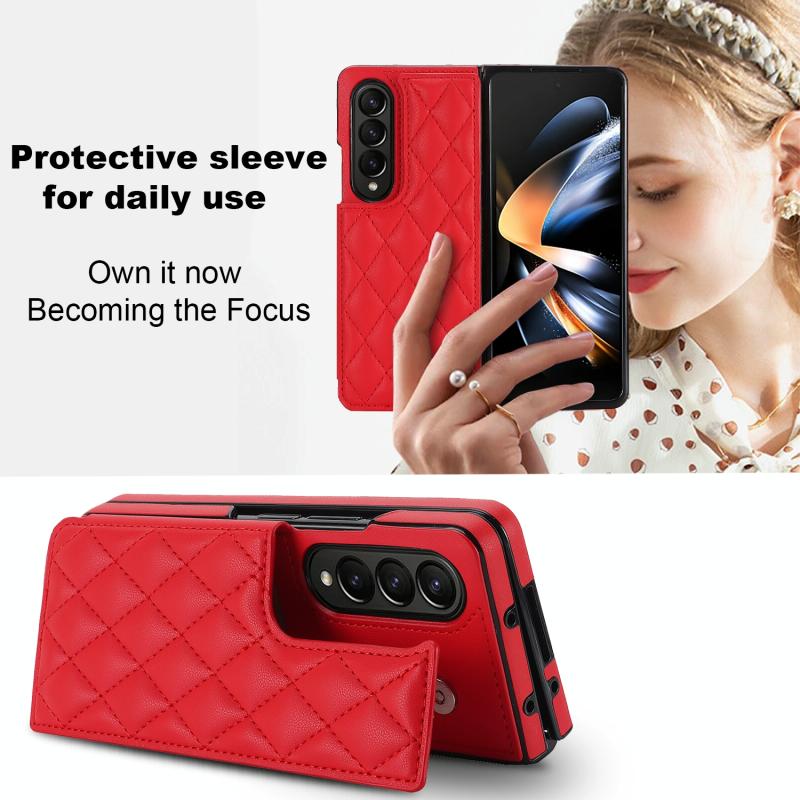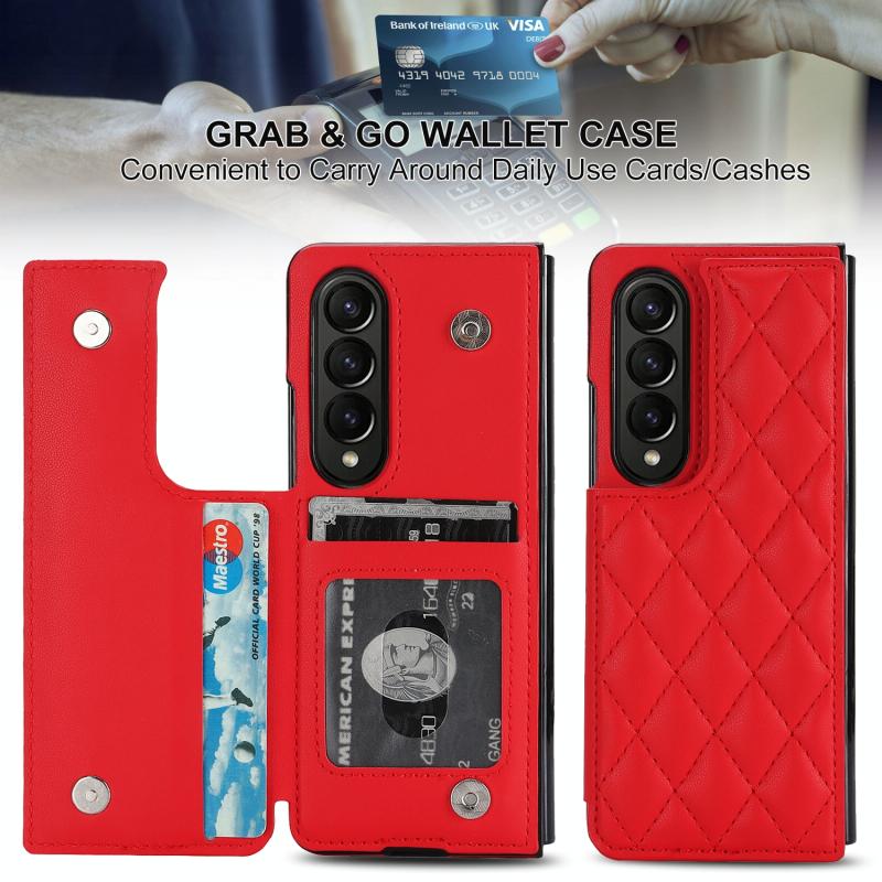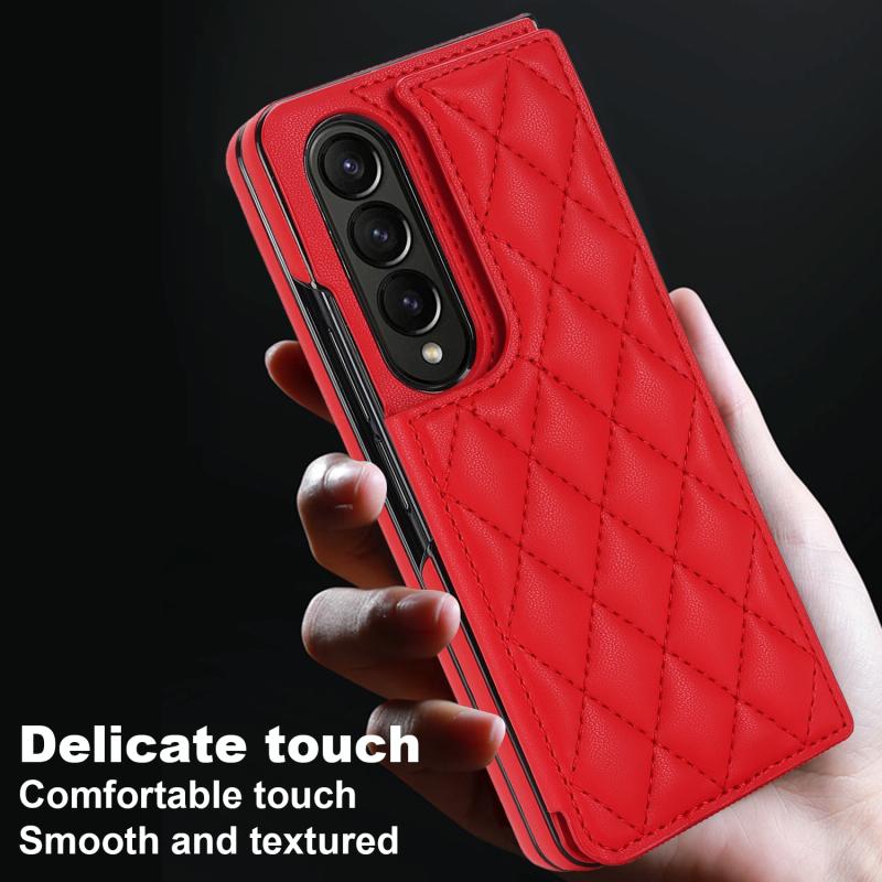 For Samsung Galaxy Z Fold4 Rhombic Texture Full Coverage Fold Double Buckle PU Phone Case(Red)