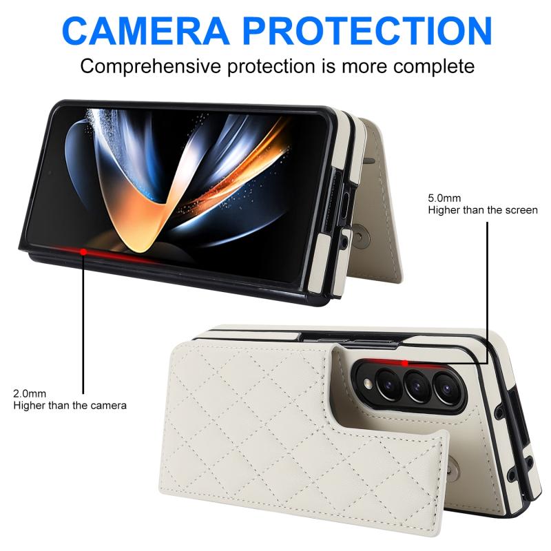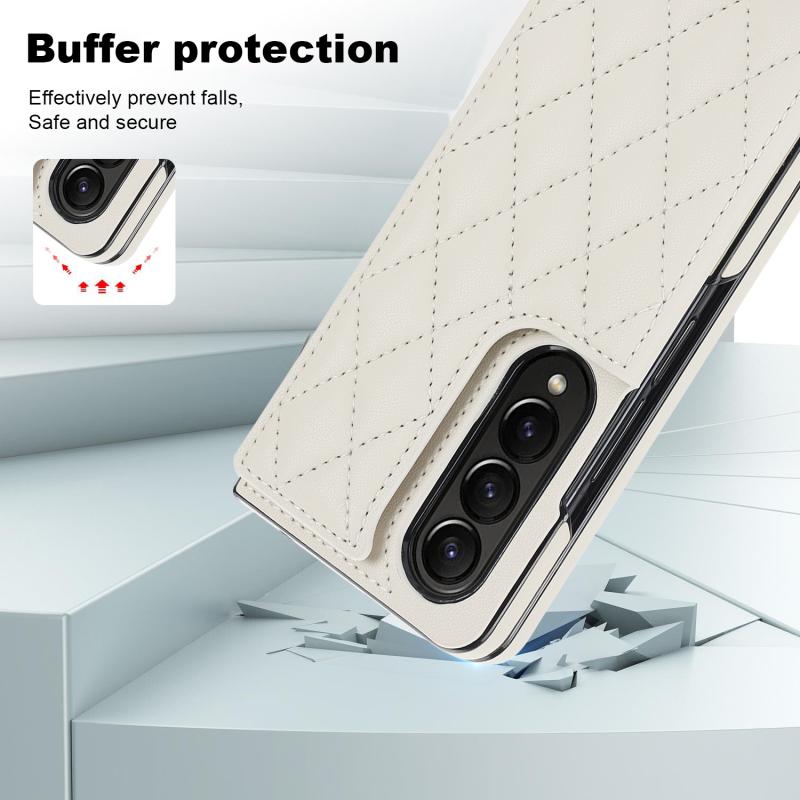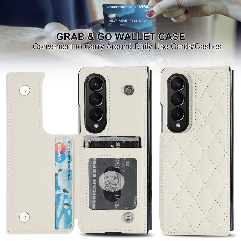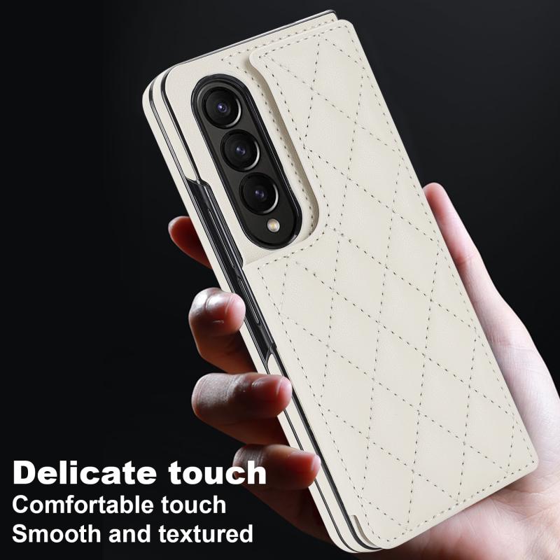 For Samsung Galaxy Z Fold4 Rhombic Texture Full Coverage Fold Double Buckle PU Phone Case(White)