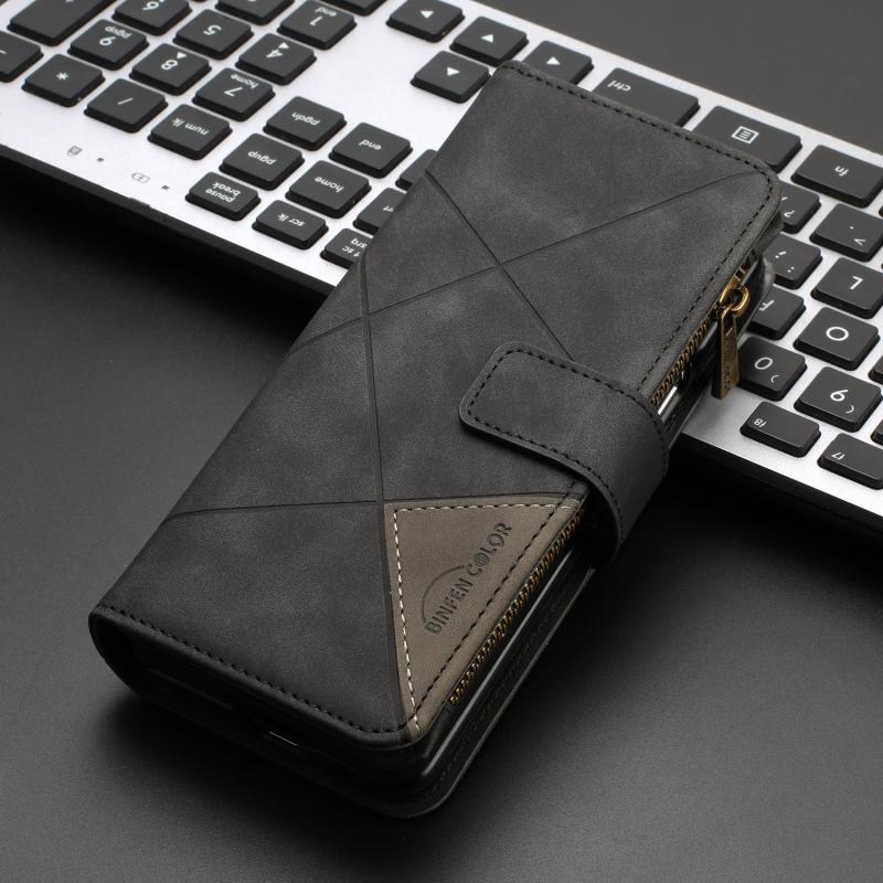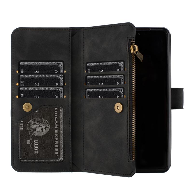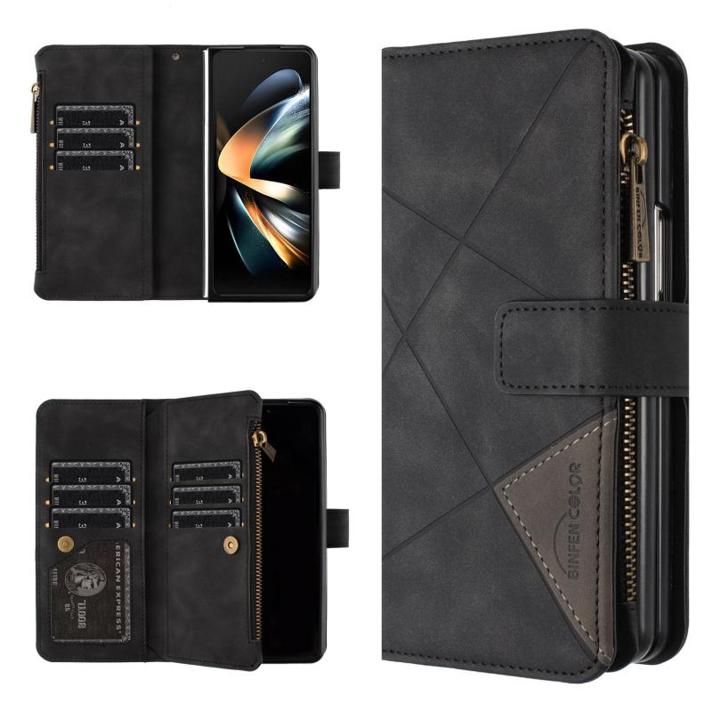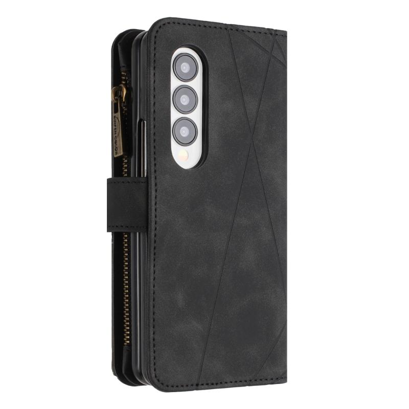 For Samsung Galaxy Z Fold4 Rhombus Texture Zipper Wallet Leather Phone Case(Black)