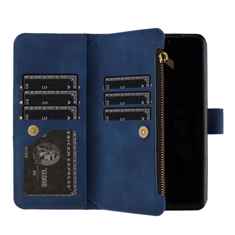 For Samsung Galaxy Z Fold4 Rhombus Texture Zipper Wallet Leather Phone Case(Blue)