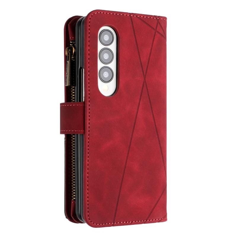 For Samsung Galaxy Z Fold4 Rhombus Texture Zipper Wallet Leather Phone Case(Red)