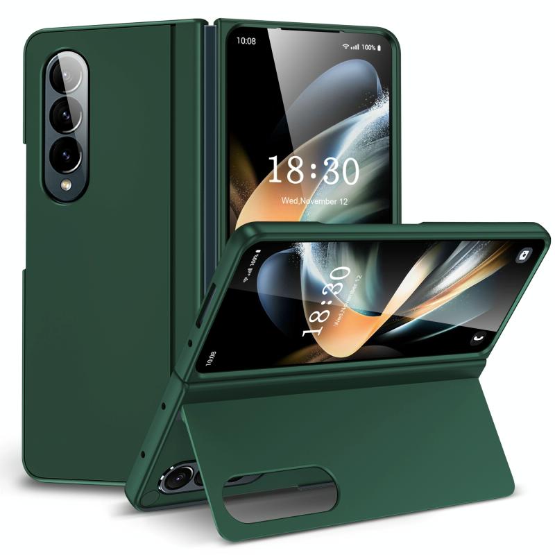 For Samsung Galaxy Z Fold4 Skin Feel Fold Full Coverage Phone Case with Holder(Green)