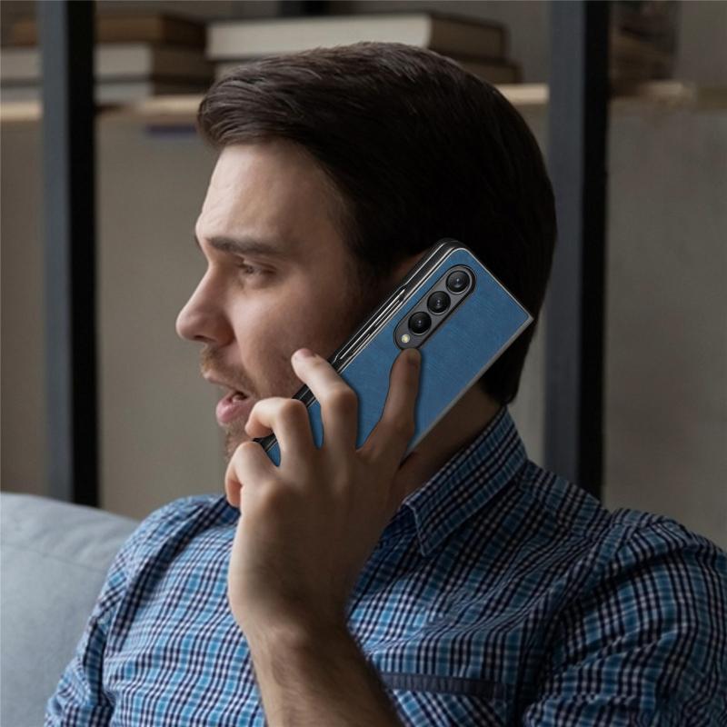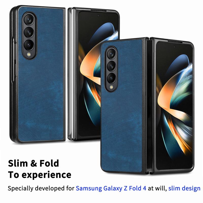 For Samsung Galaxy Z Fold4 Skin-feel Solid Color PU Back Cover Phone Case(Blue)