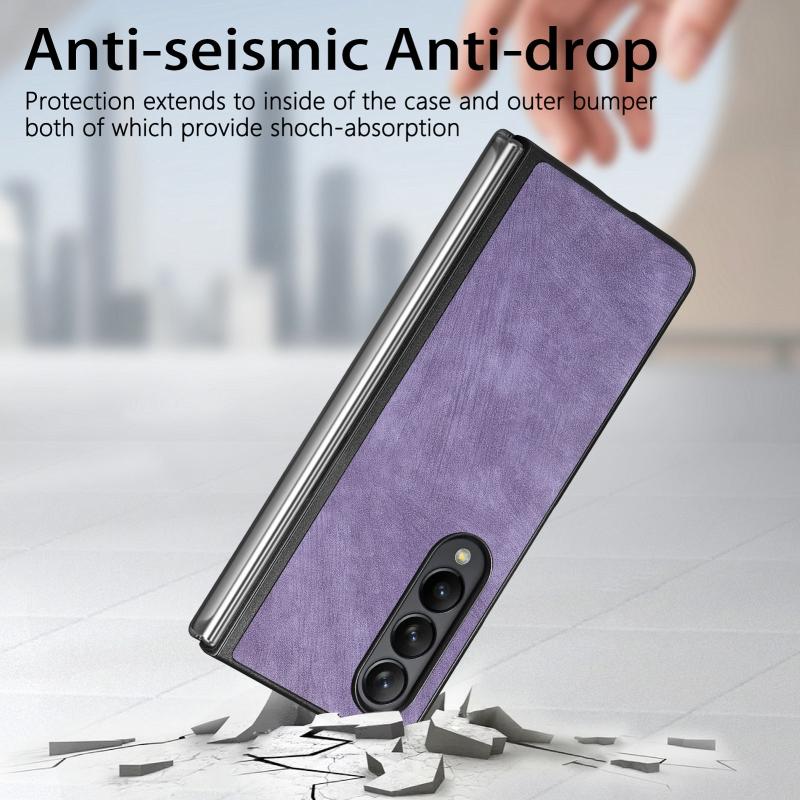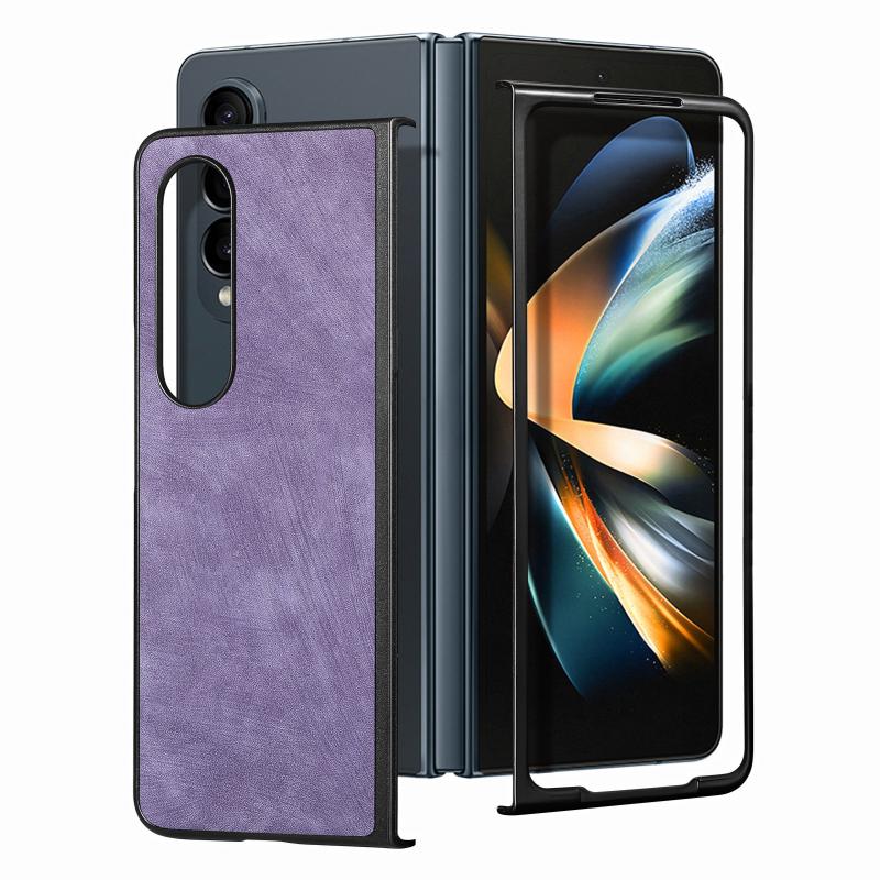 For Samsung Galaxy Z Fold4 Skin-feel Solid Color PU Back Cover Phone Case(Purple)