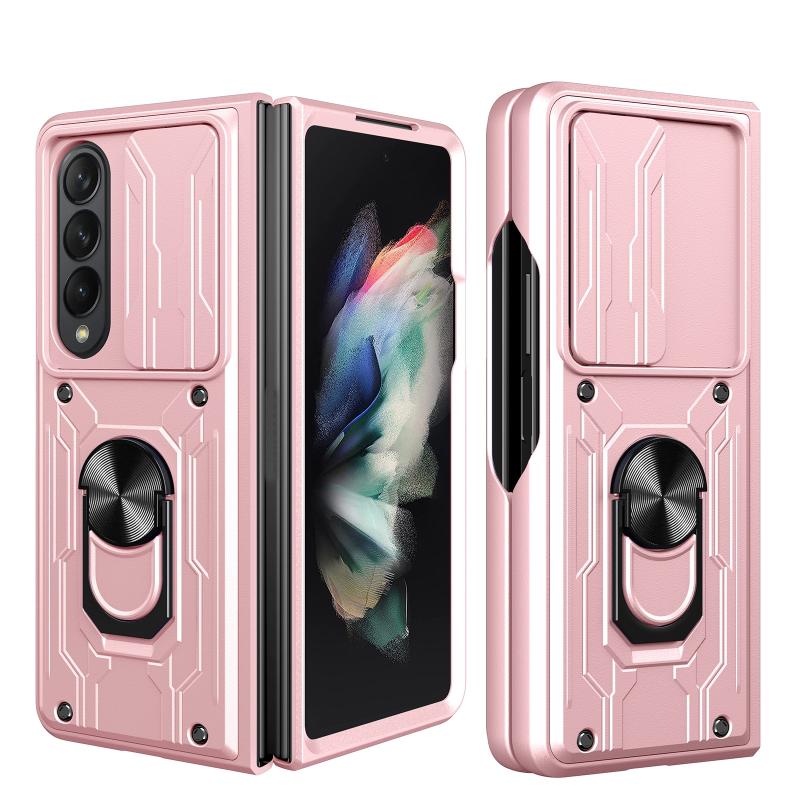For Samsung Galaxy Z Fold4 Sliding Camshield Card Phone Case(Rose Gold)