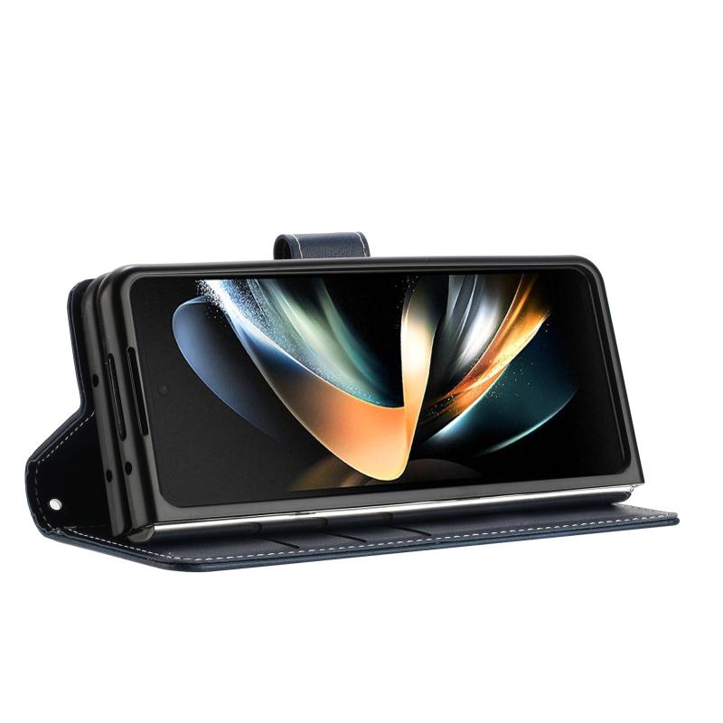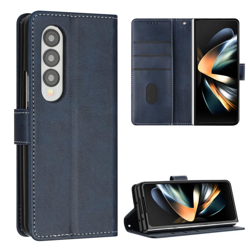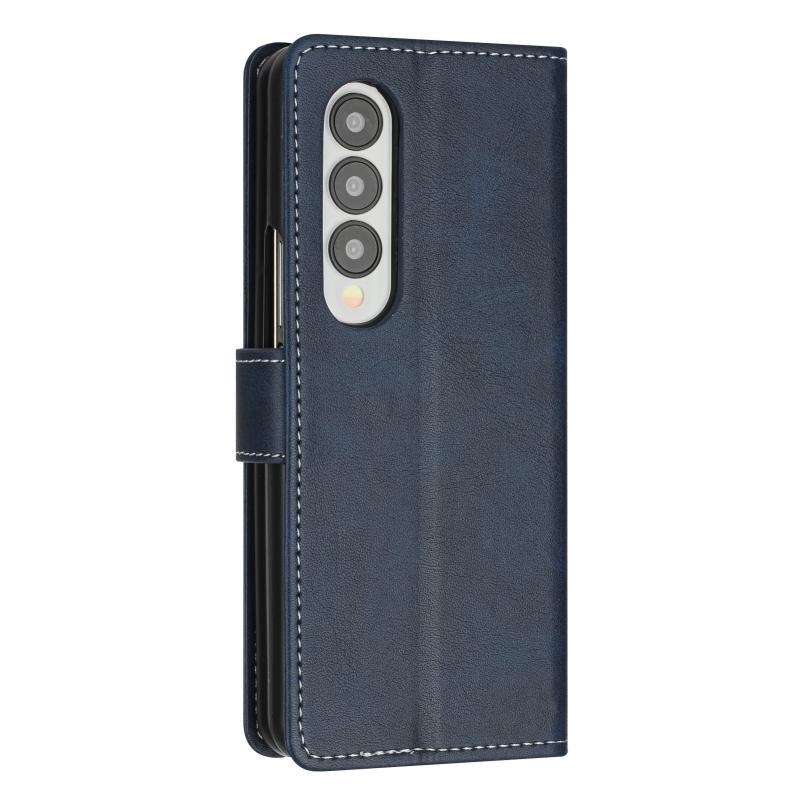 For Samsung Galaxy Z Fold4 Stitching Calf Texture Buckle Folding Leather Phone Case(Blue)