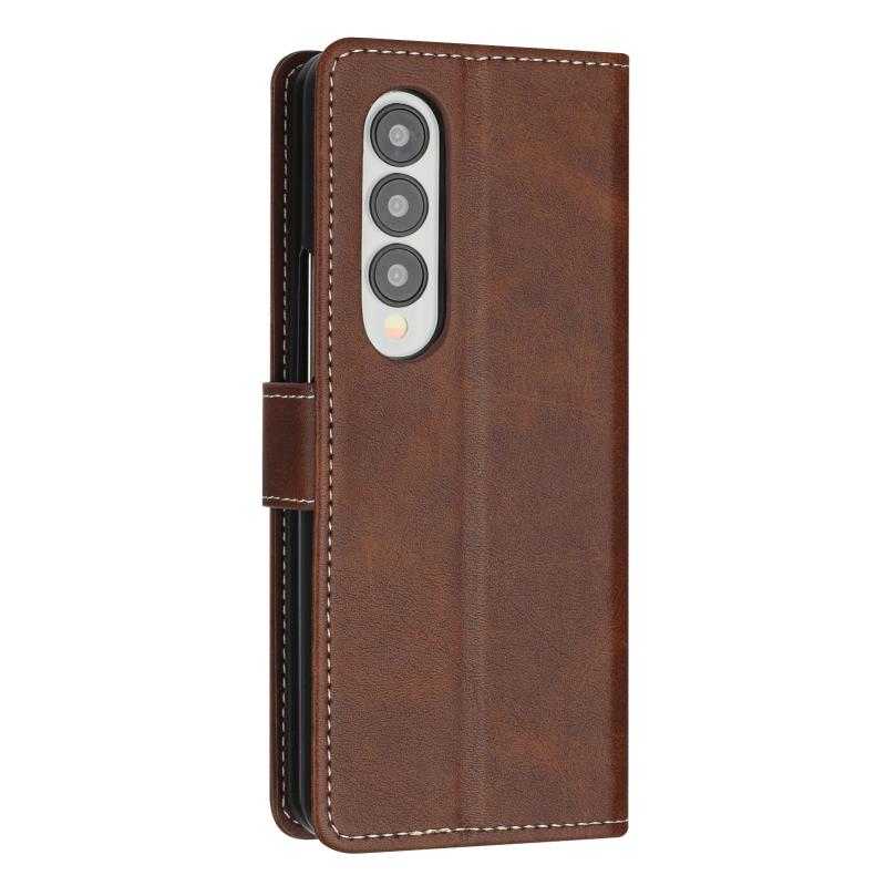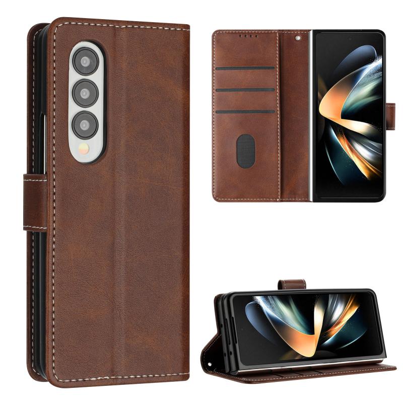 For Samsung Galaxy Z Fold4 Stitching Calf Texture Buckle Folding Leather Phone Case(Brown)