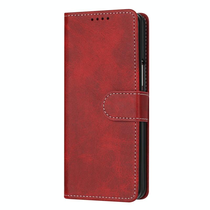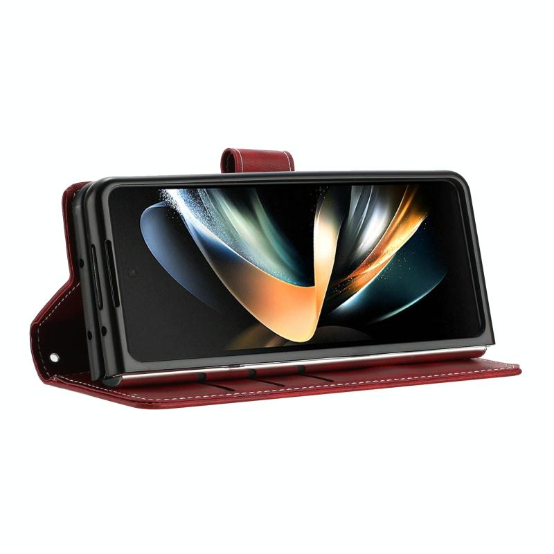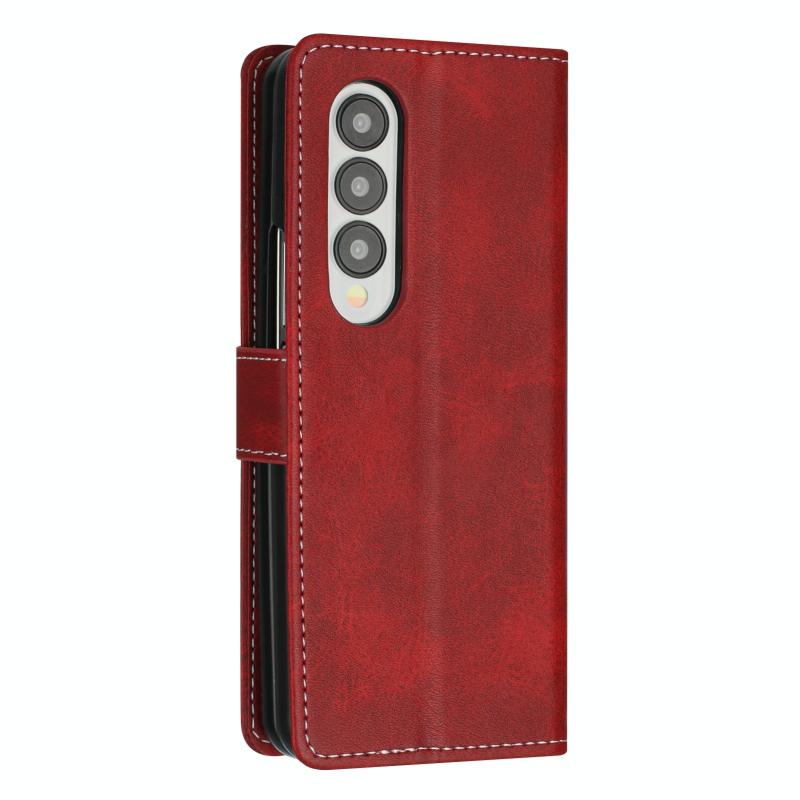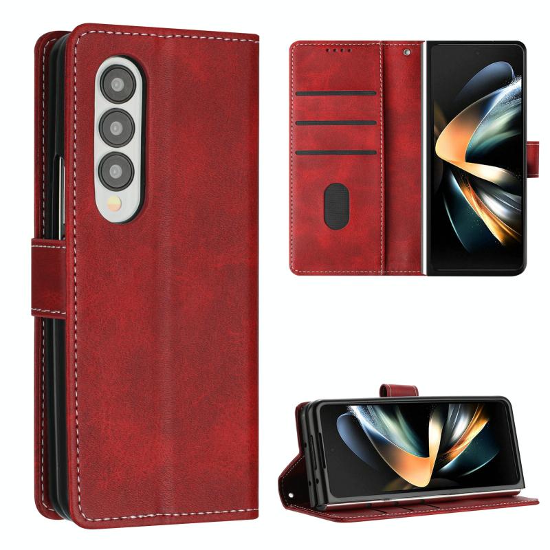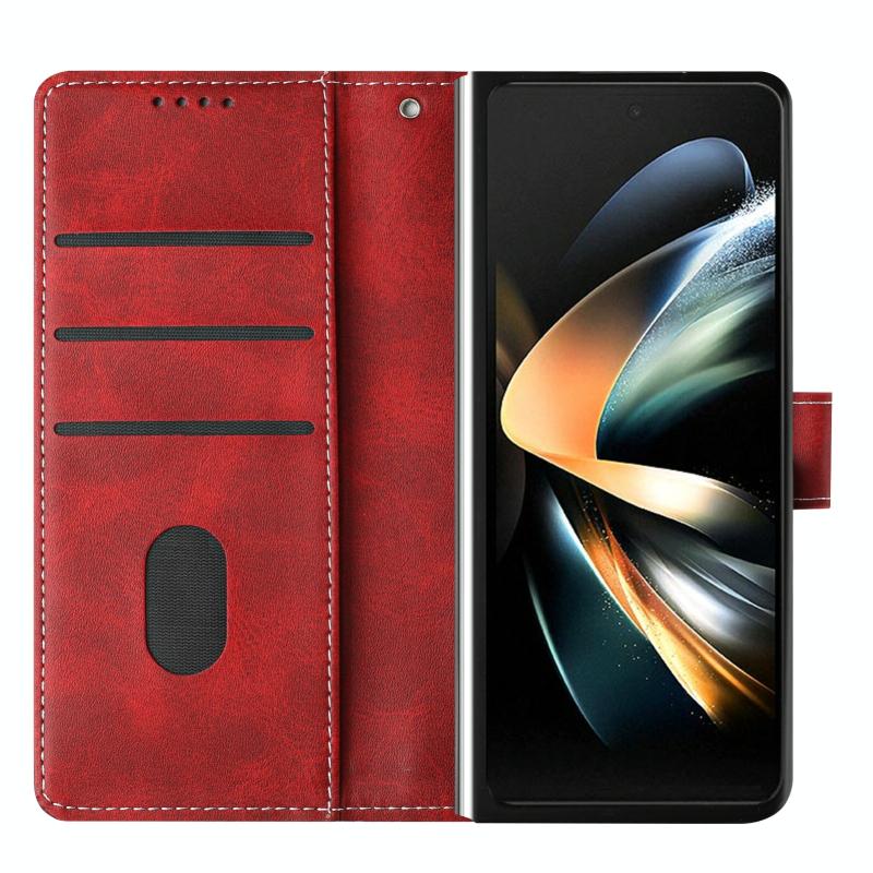 For Samsung Galaxy Z Fold4 Stitching Calf Texture Buckle Folding Leather Phone Case(Red)