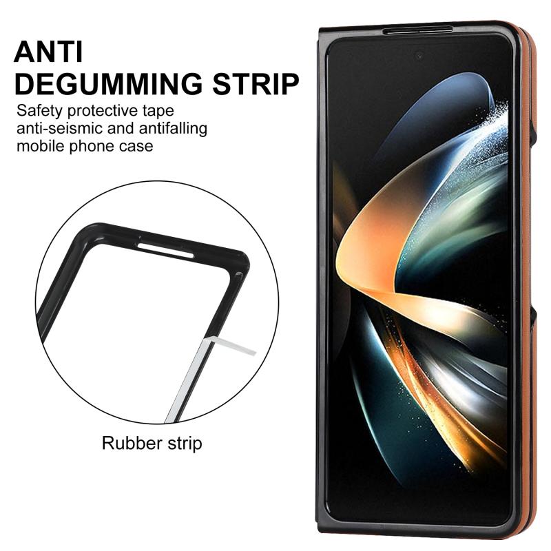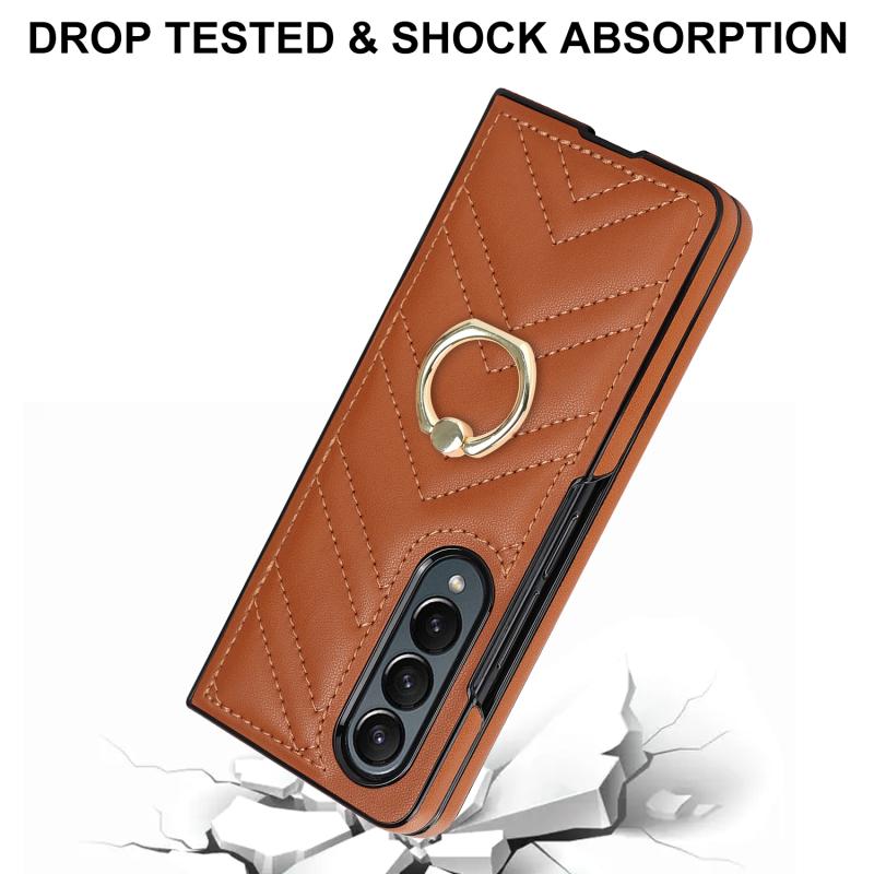 For Samsung Galaxy Z Fold4 V-shaped Folding Phone Case with Rotating Ring(Brown)