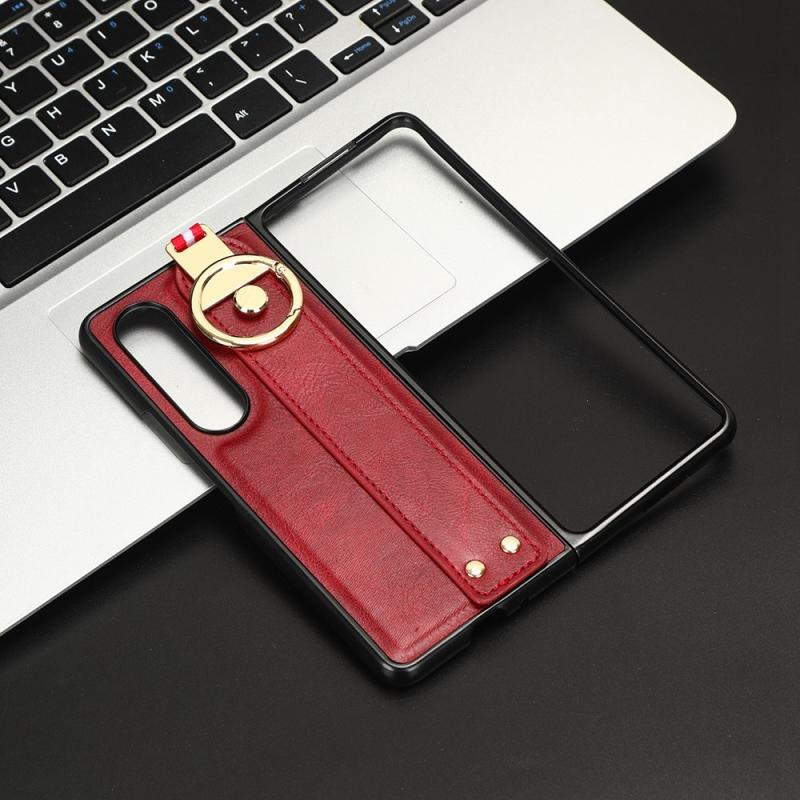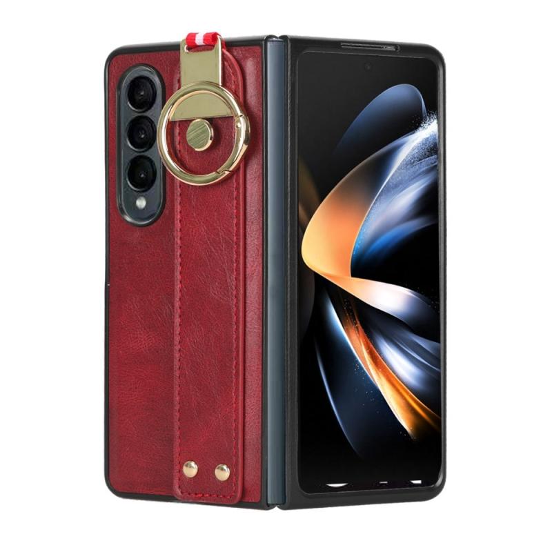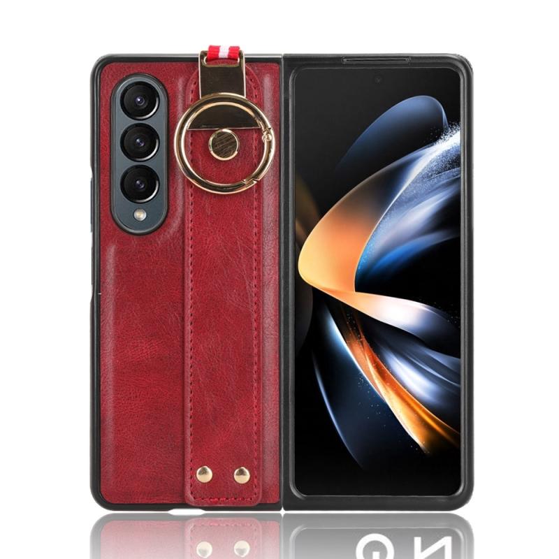 For Samsung Galaxy Z Fold4 Wristband Leather Back Phone Case(Red)