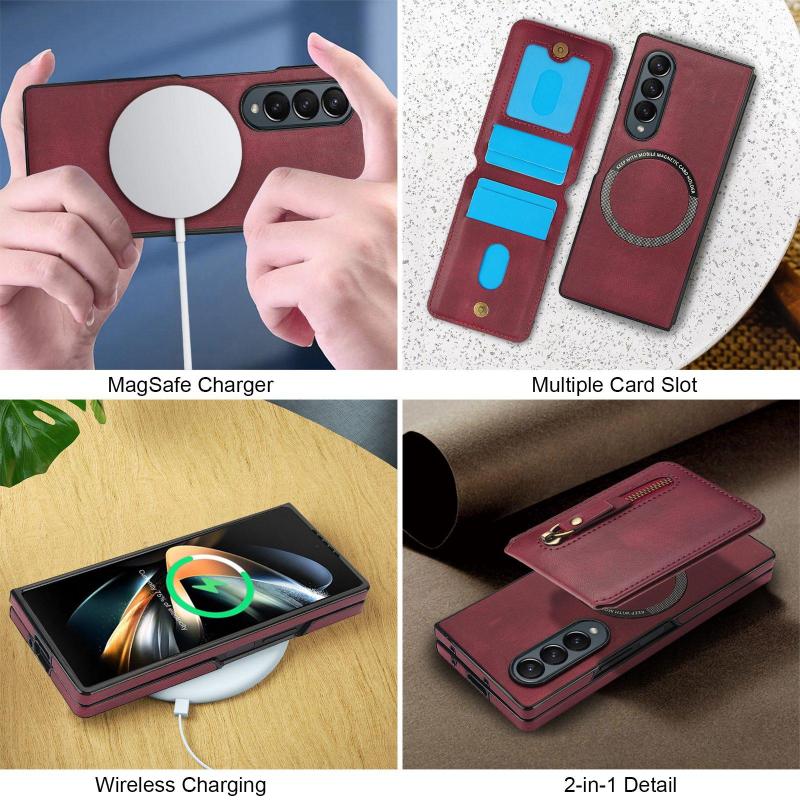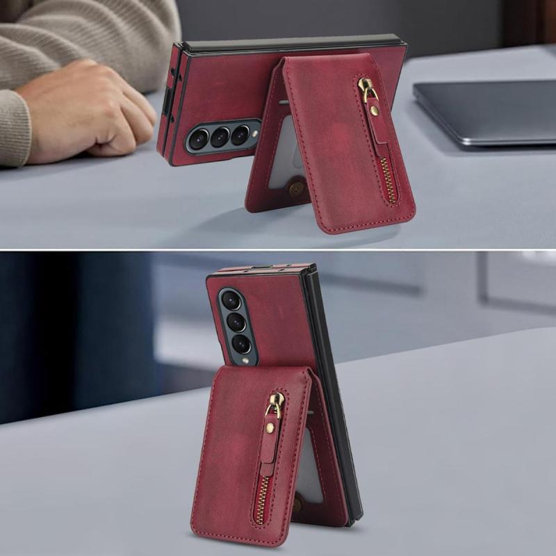 For Samsung Galaxy Z Fold4 Zipper Wallet Split MagSafe Leather Back Phone Case(Red)