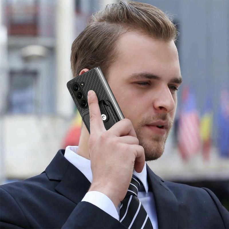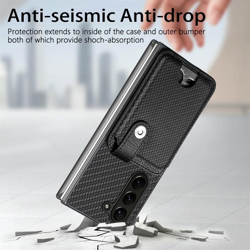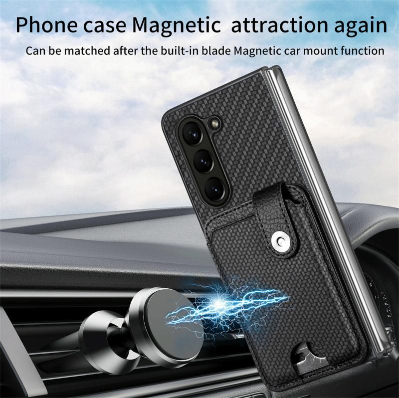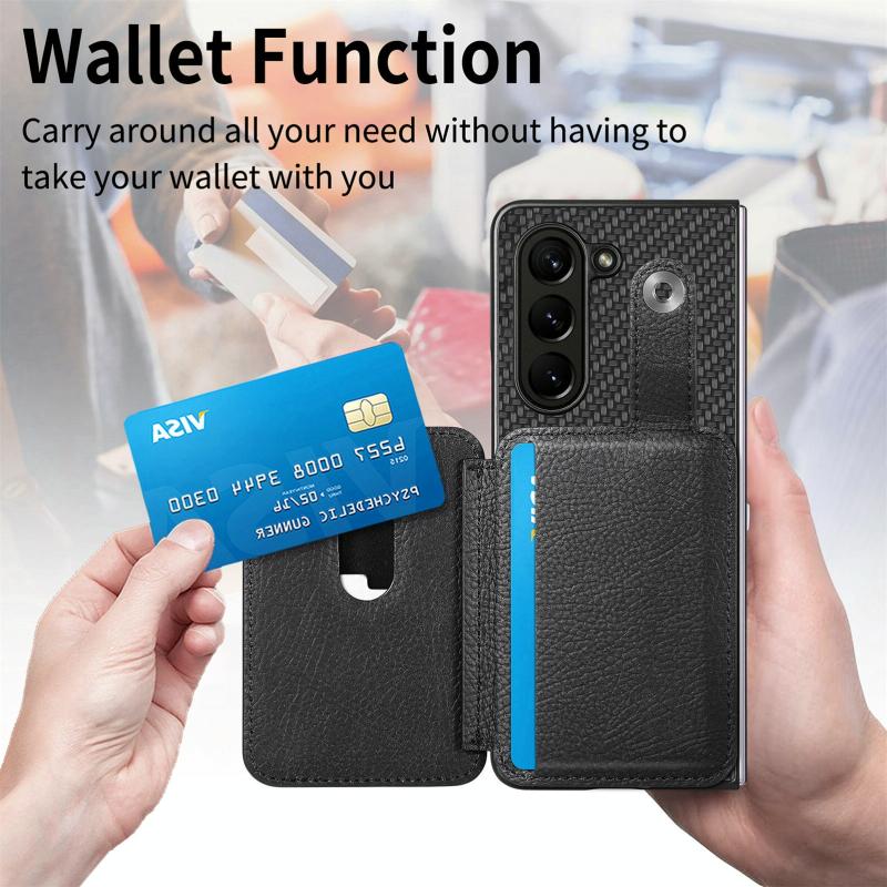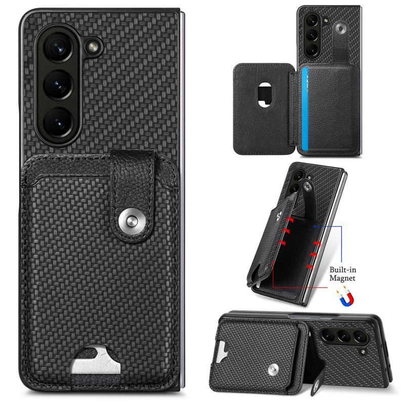 For Samsung Galaxy Z Fold5 5G Card Wallet Kickstand Back Phone Case with Tool Knife(Black)