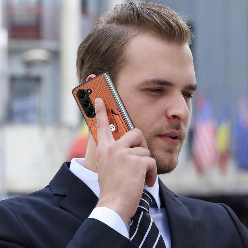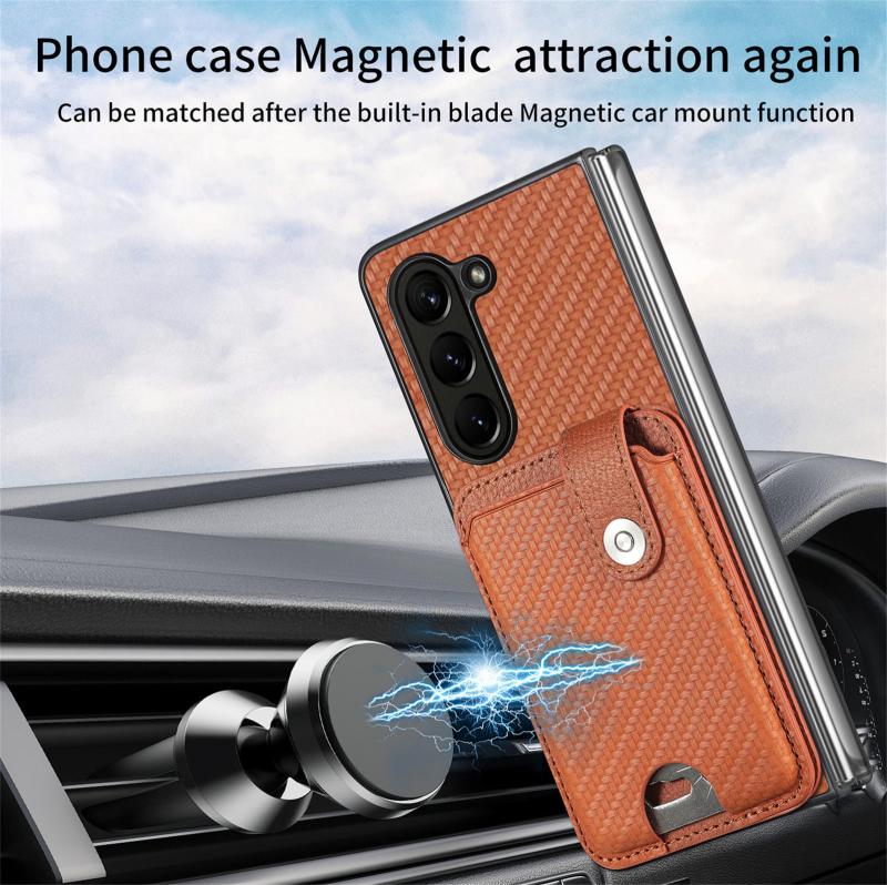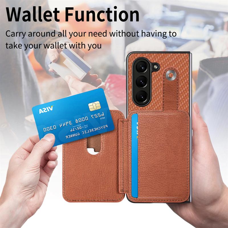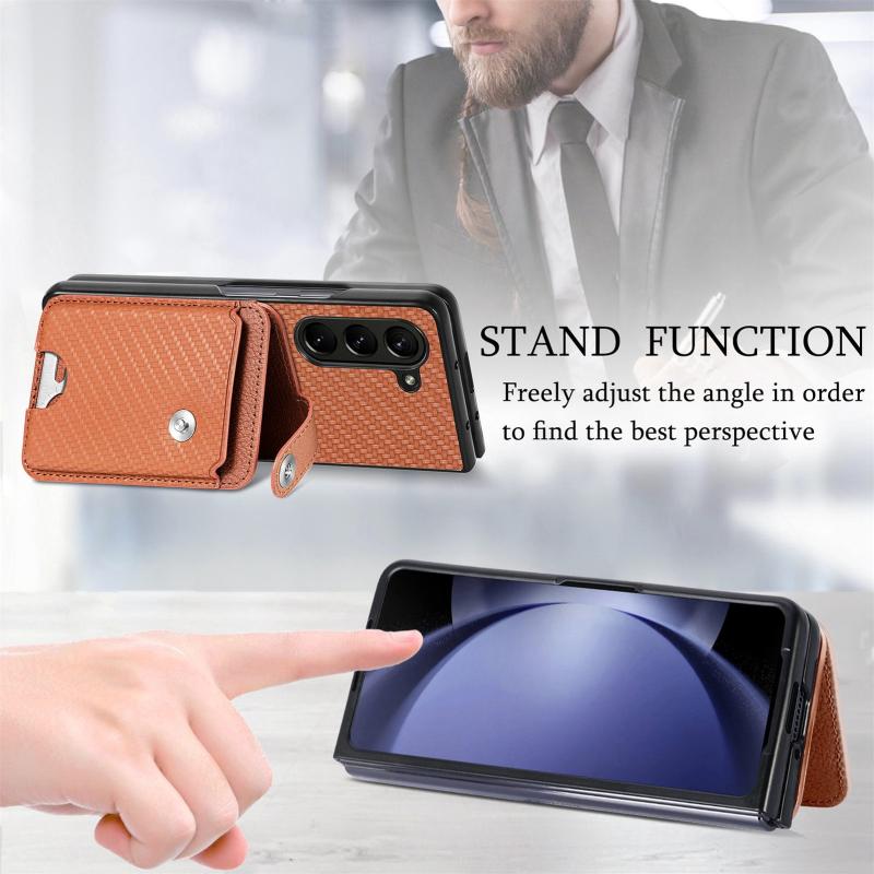 For Samsung Galaxy Z Fold5 5G Card Wallet Kickstand Back Phone Case with Tool Knife(Brown)