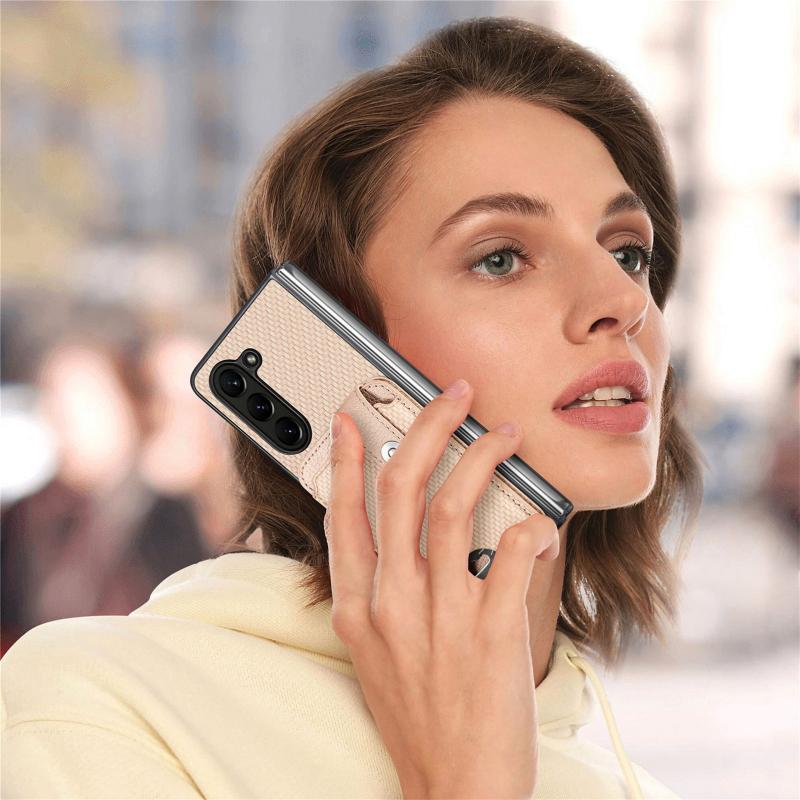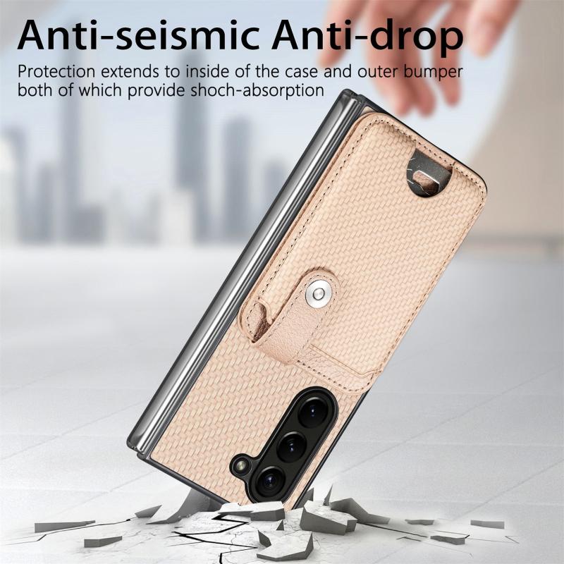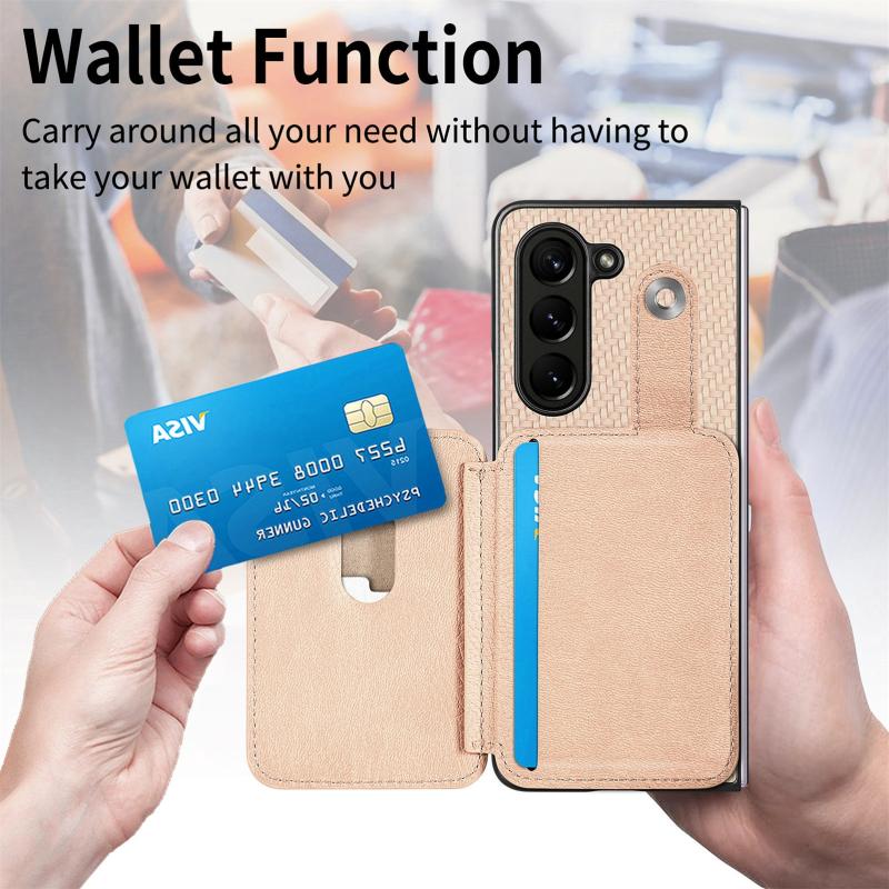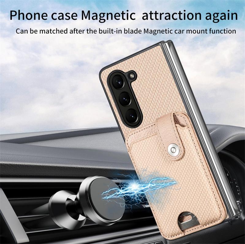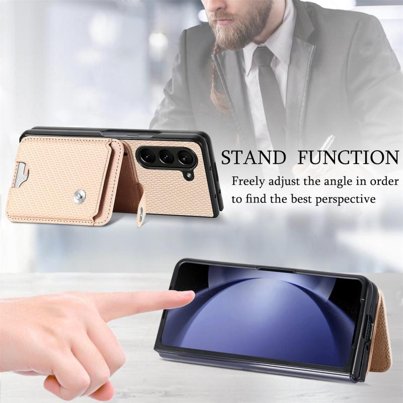 For Samsung Galaxy Z Fold5 5G Card Wallet Kickstand Back Phone Case with Tool Knife(Khaki)