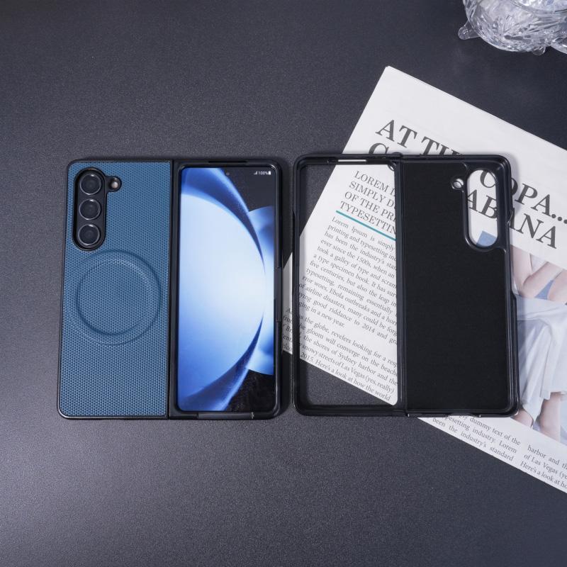 For Samsung Galaxy Z Fold5 5G Diamond Pattern MagSafe Magnetic Folding Phone Case(Dark Blue)