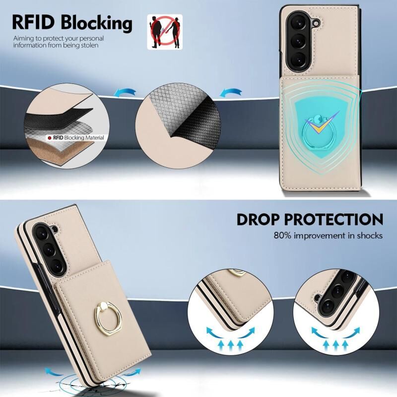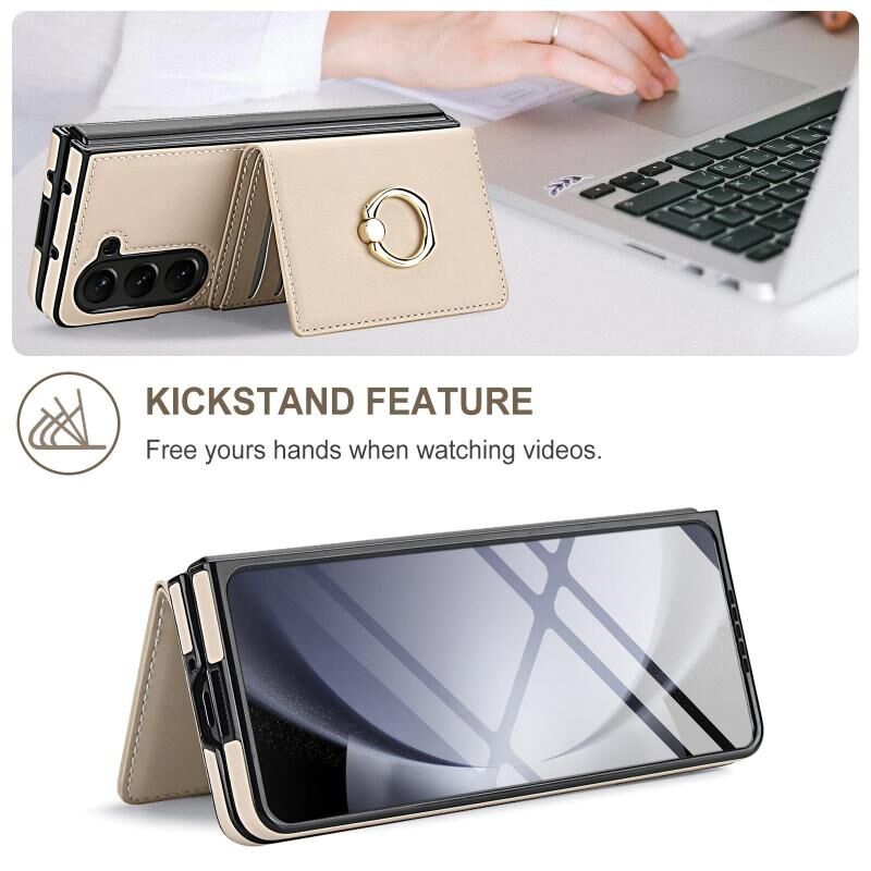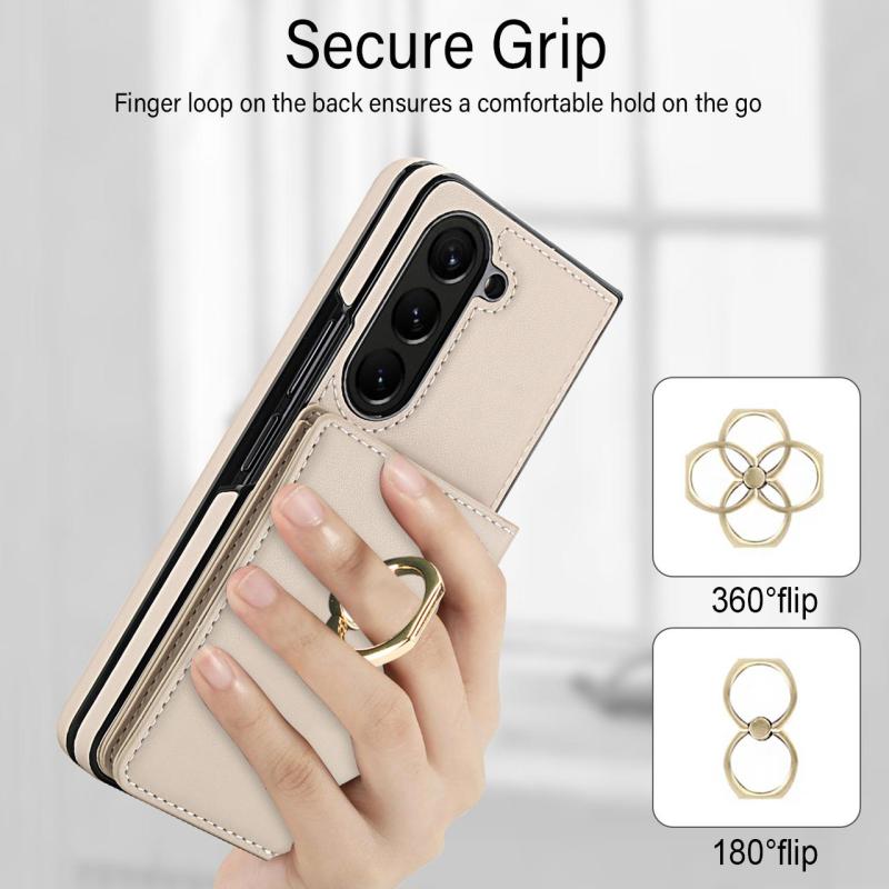 For Samsung Galaxy Z Fold5 5G Integrated Flip Cover Card Slot Holder Leather Phone Case with Ring(White)