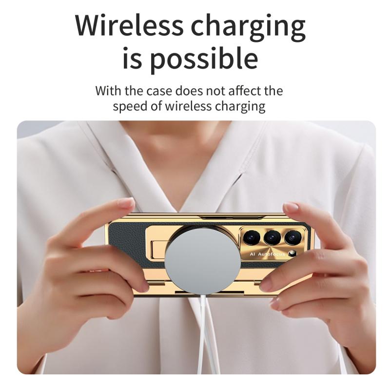 For Samsung Galaxy Z Fold5 5G Integrated Full Coverage Phone Case with Hinge(Gold+Black)