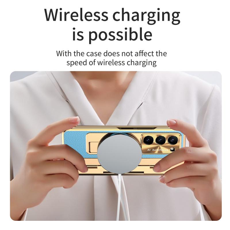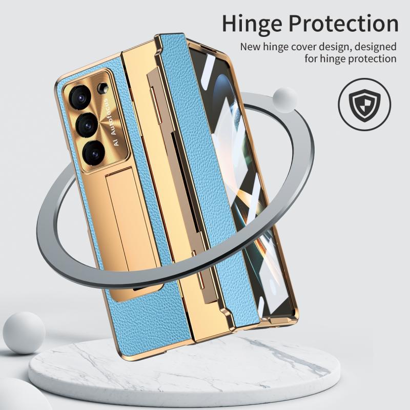 For Samsung Galaxy Z Fold5 5G Integrated Full Coverage Phone Case with Hinge(Gold+Blue)