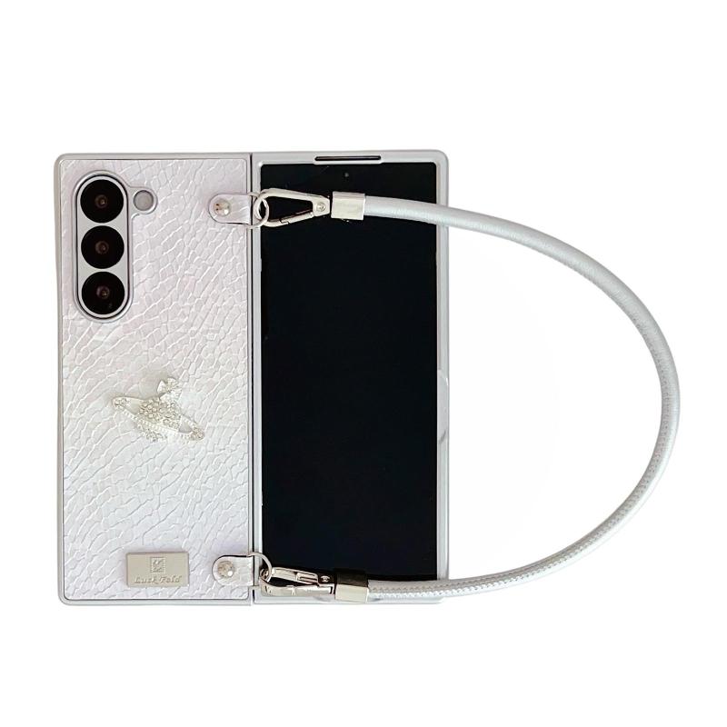 For Samsung Galaxy Z Fold5 5G Kirin Pattern Full Coverage Phone Case with Wrist Strap(White)