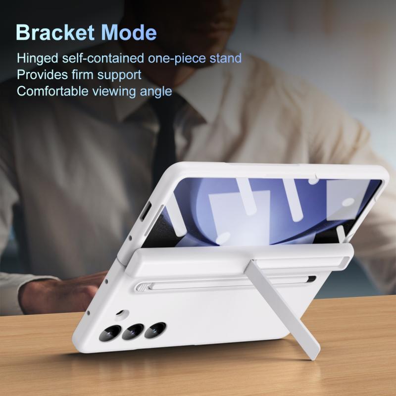 For Samsung Galaxy Z Fold5 5G Long Chi Grain Leather Shockproof Phone Case, No Pen(White)