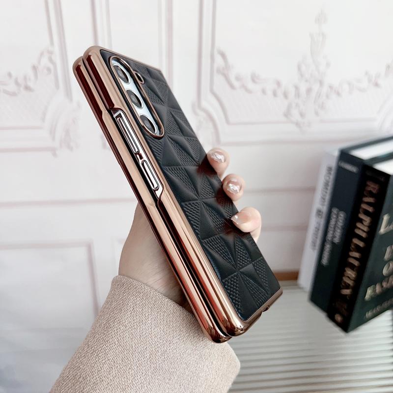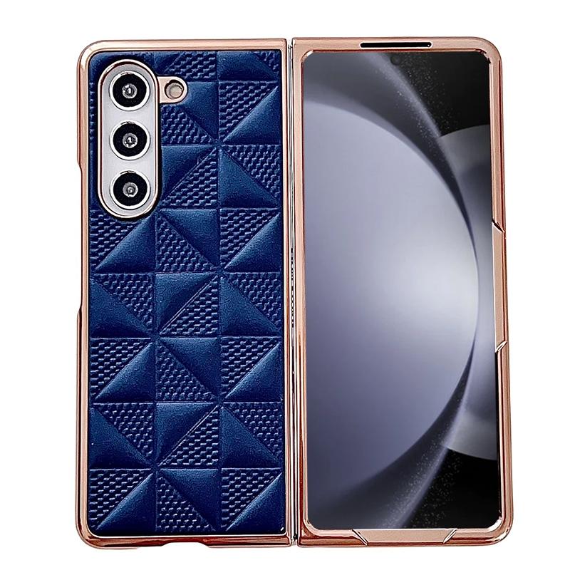 For Samsung Galaxy Z Fold5 5G Plating Plaid PU All-inclusive Shockproof Phone Case(Blue)