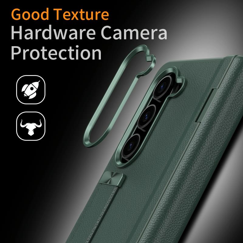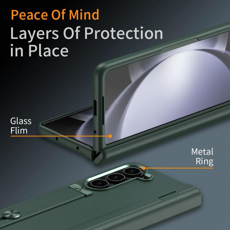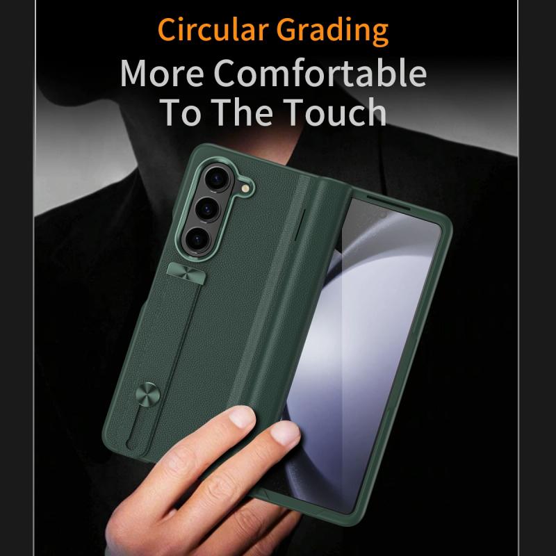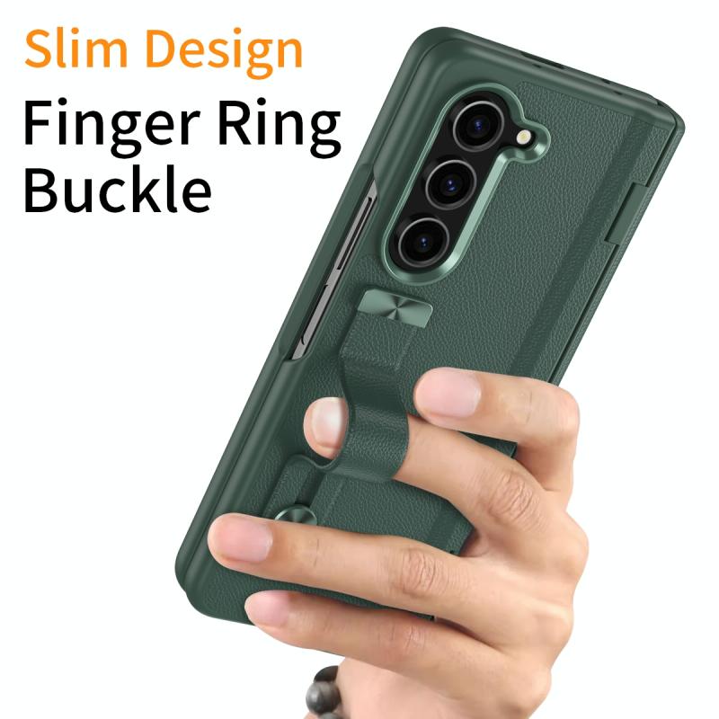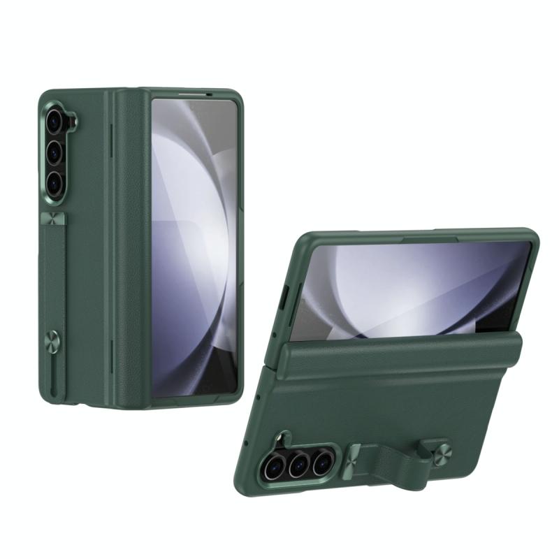 For Samsung Galaxy Z Fold5 5G Wristband Holder Grain Leather Folding Phone Case(Green)