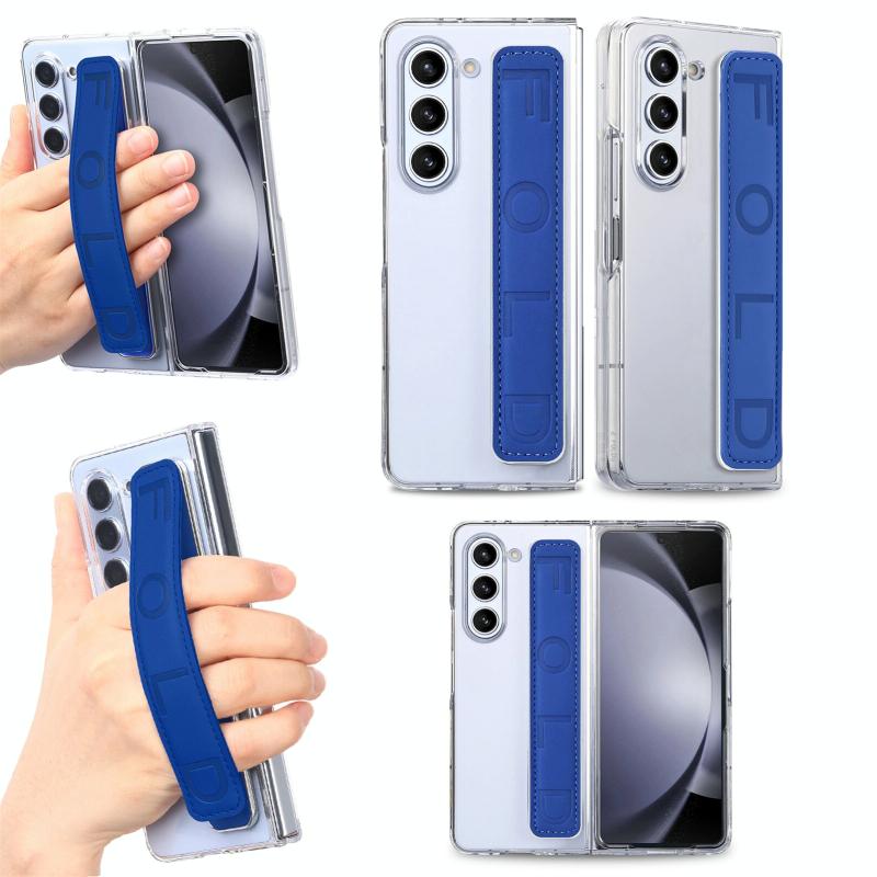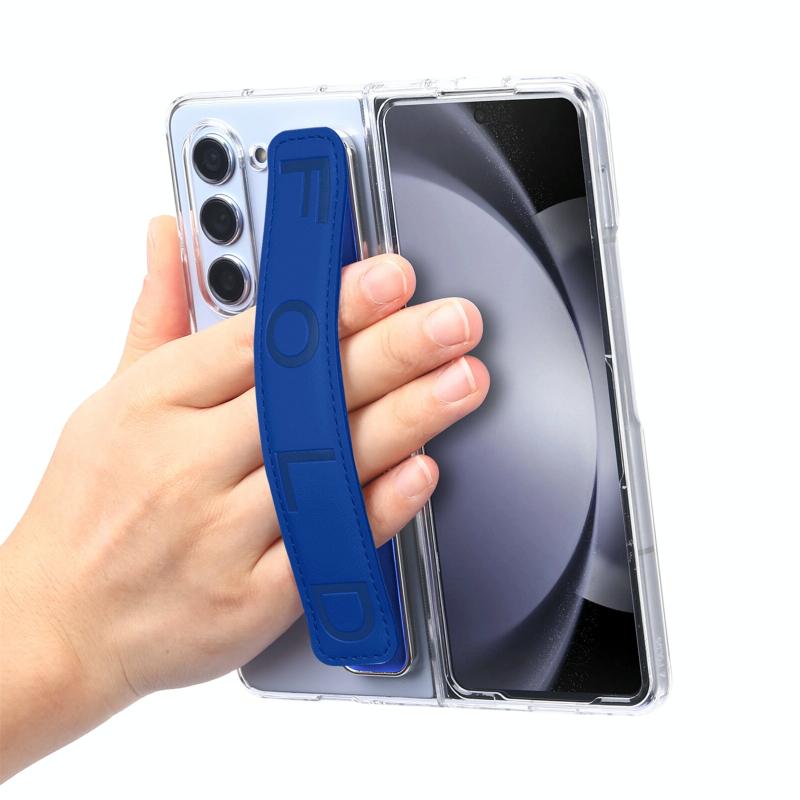 For Samsung Galaxy Z Fold5 5G Wristband Transparent Phone Case(Dark Blue)