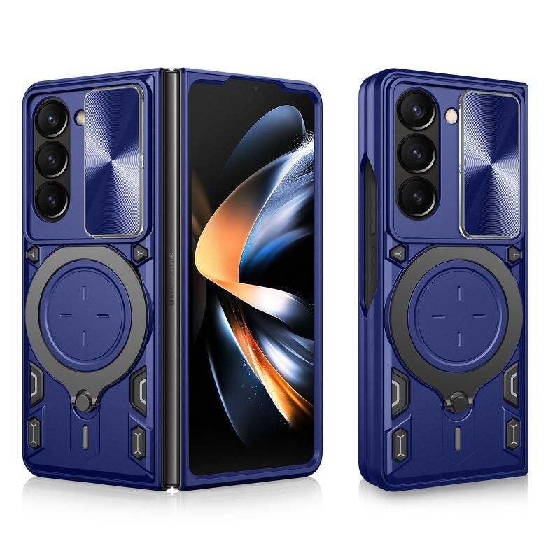 For Samsung Galaxy Z Fold5 CD Texture Sliding Camshield Magnetic Holder Phone Case(Blue)