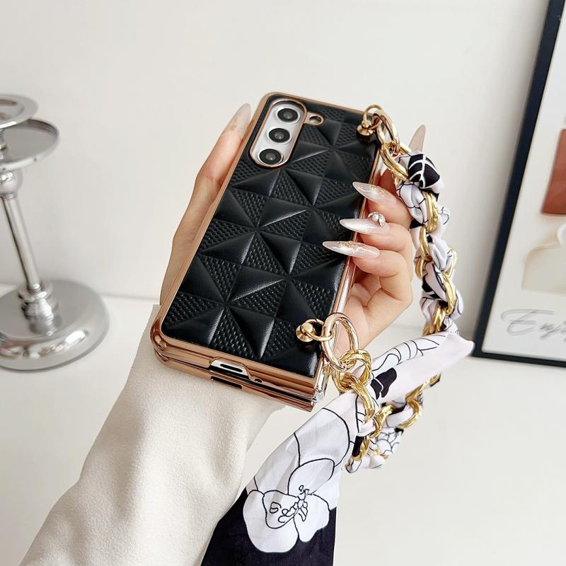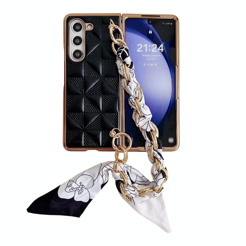 For Samsung Galaxy Z Fold5 Checkered Scarf Bracelet Phone Case(Black)
