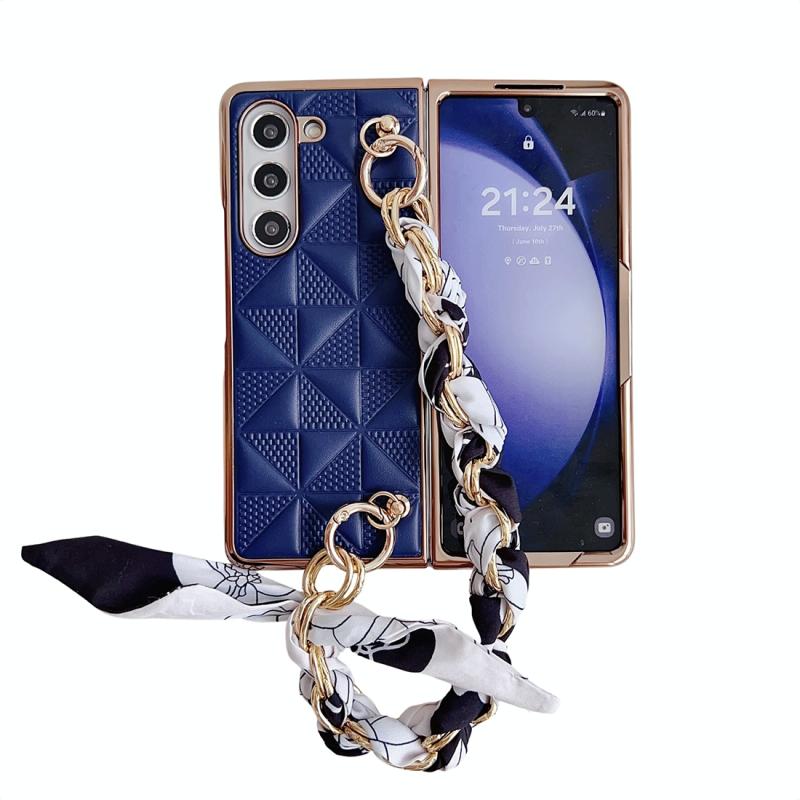 For Samsung Galaxy Z Fold5 Checkered Scarf Bracelet Phone Case(Blue)