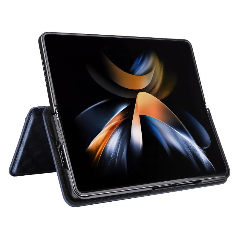 For Samsung Galaxy Z Fold5 Cubic Grid Texture Flip Leather Phone Case(Blue)